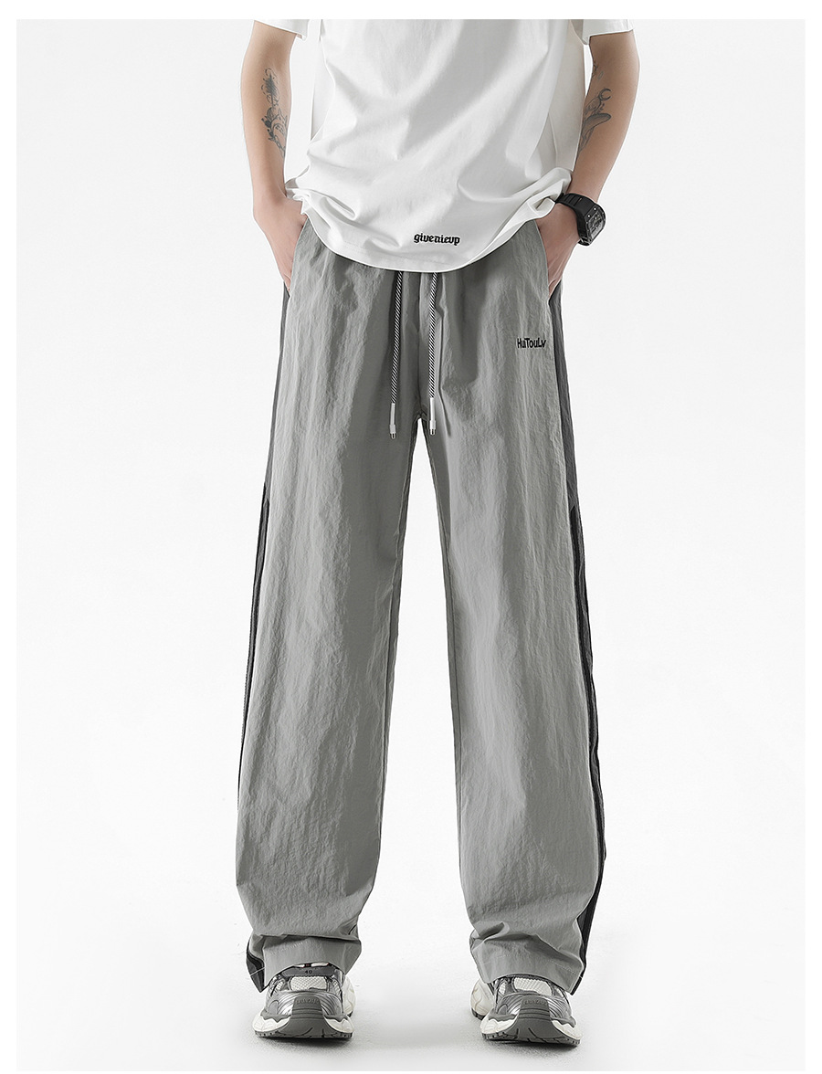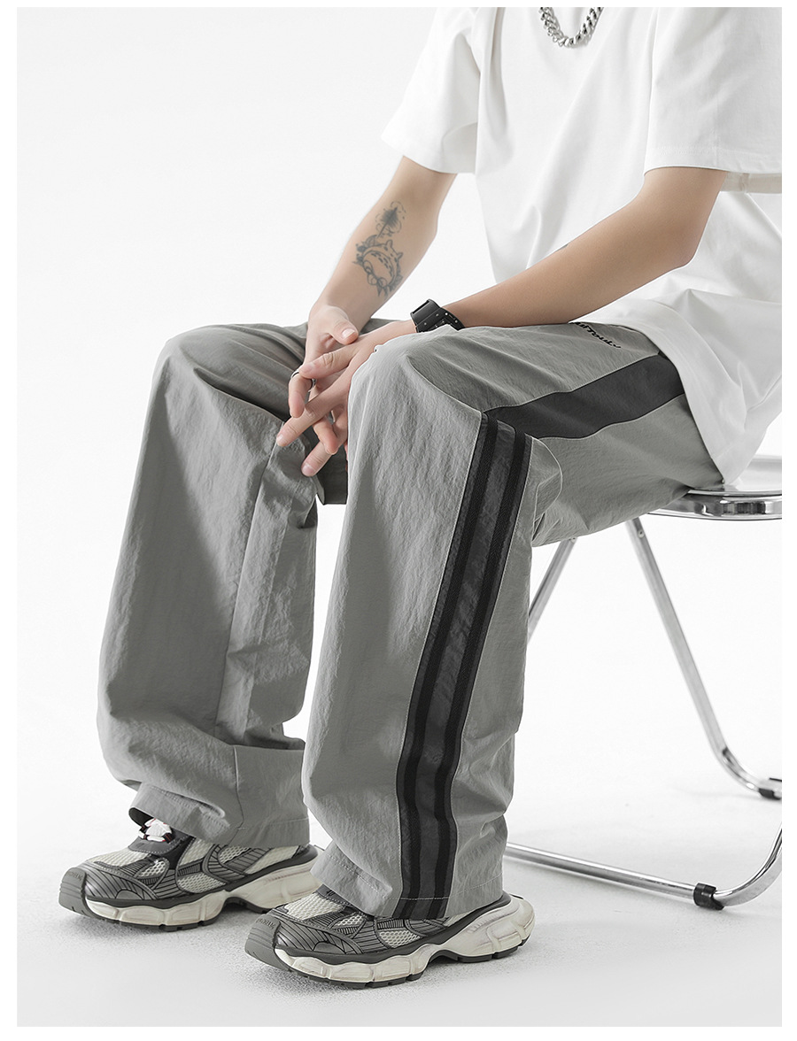 봄과 여름 트렌디 한 브랜드 캐주얼 스티칭 대비 컬러 충전 바지 크레인 바지 남성 국가 트렌디 트랙 잘 생긴 느슨한 스포츠 빠른 건조 긴 바지