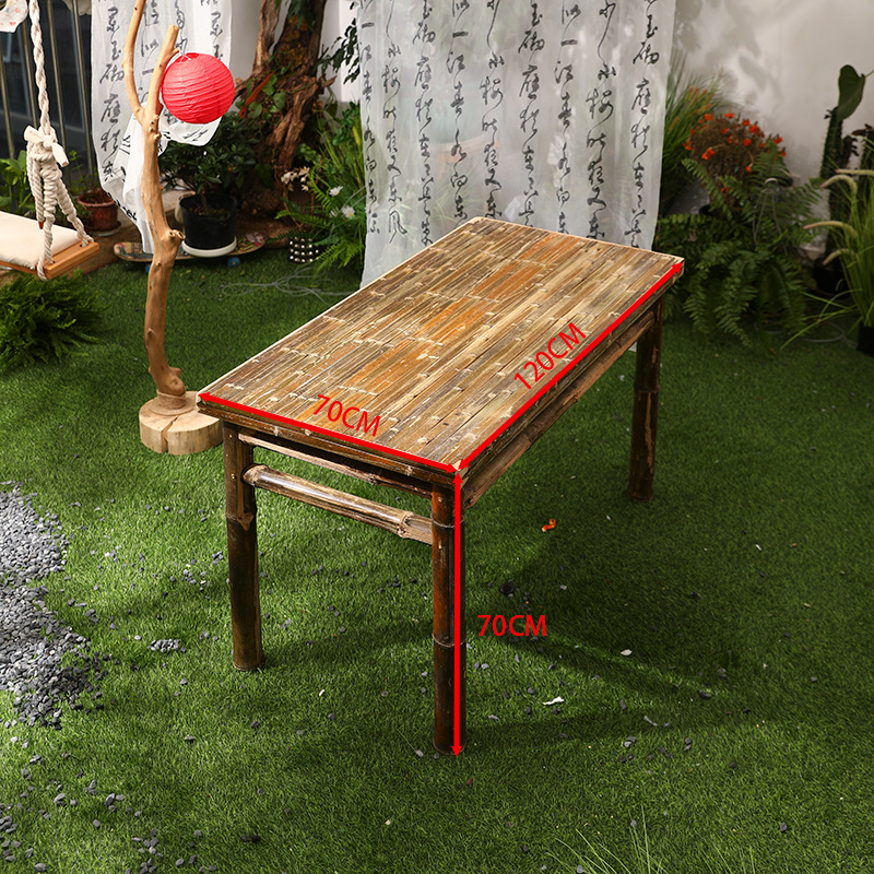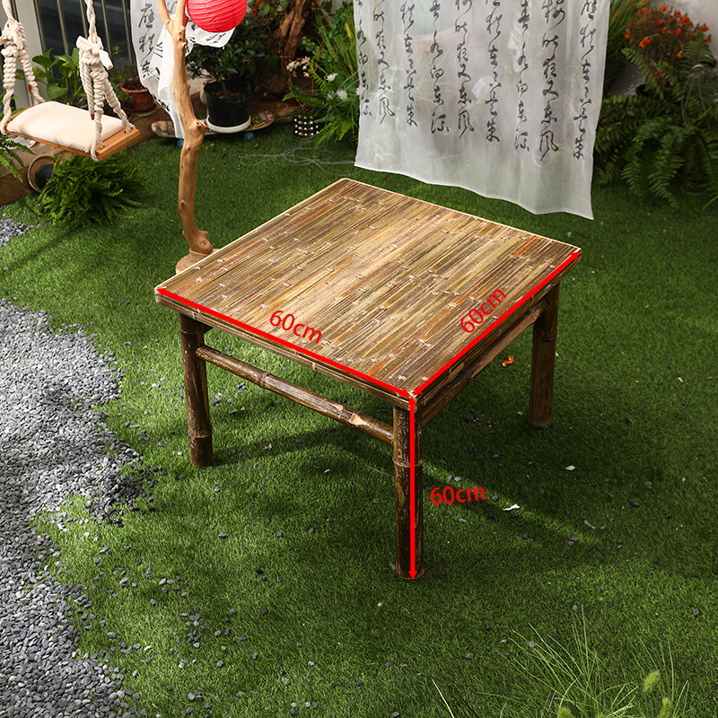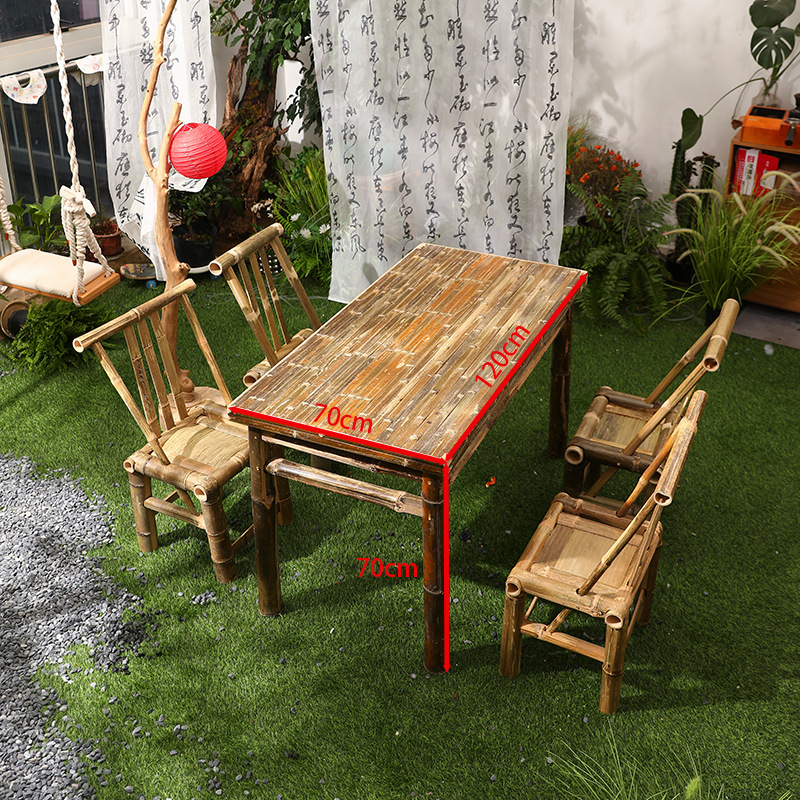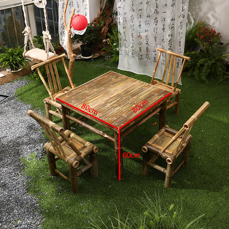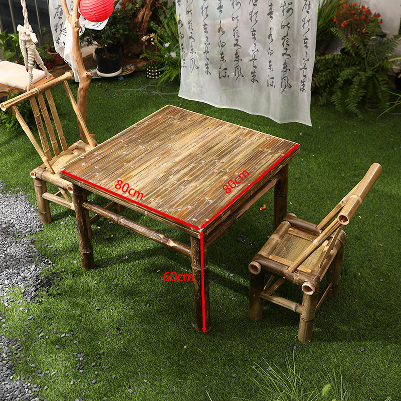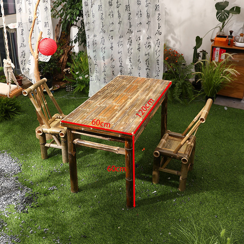 대나무 의자와 대나무 테이블 조합 야외 안뜰 레저 식사 및 차 테이블 향수 복고풍 스타일 수제 구식 대나무 테이블 g&스토어 가기