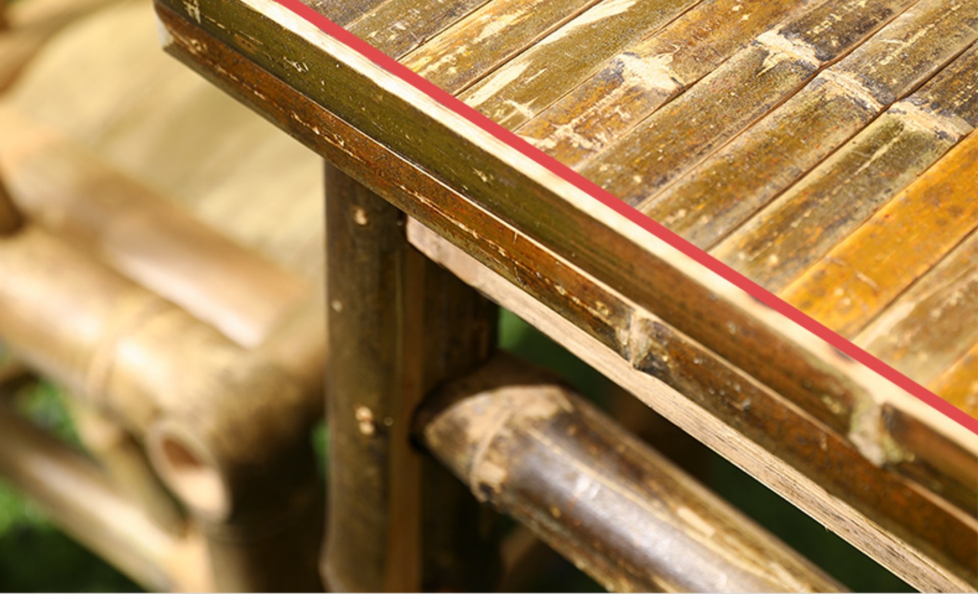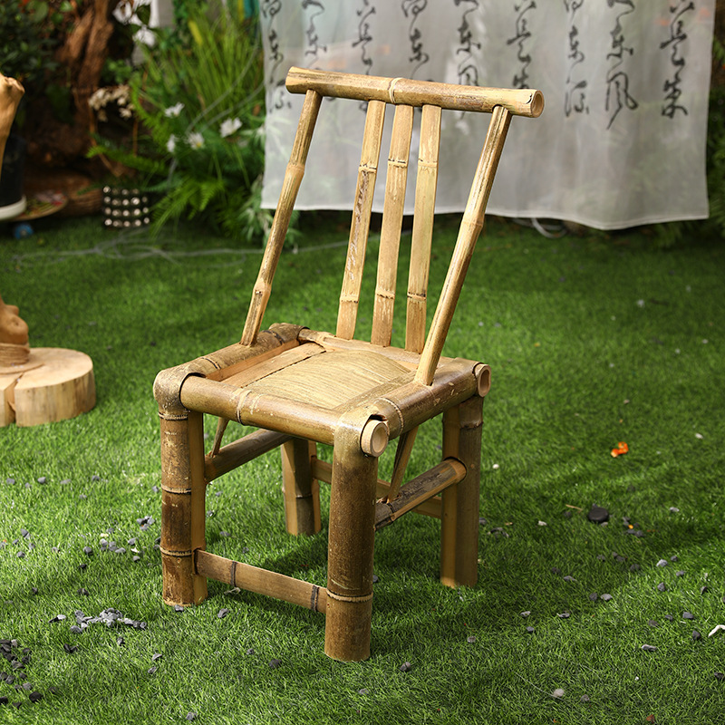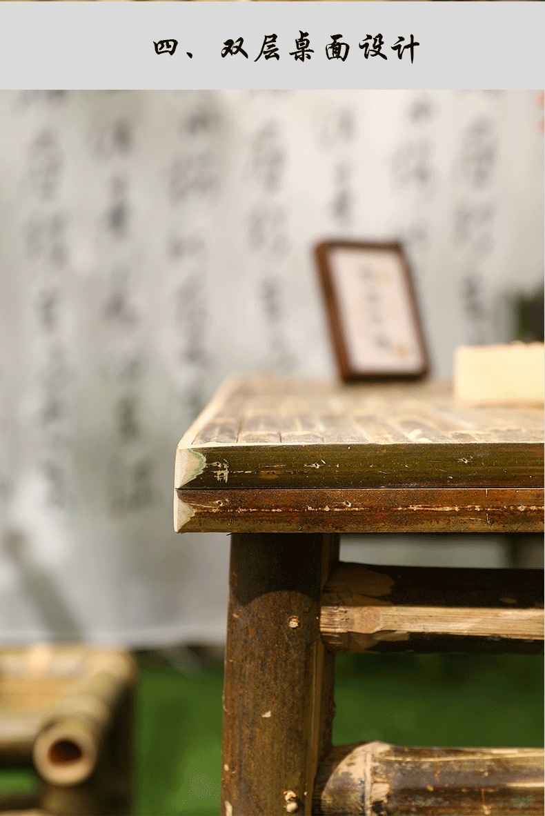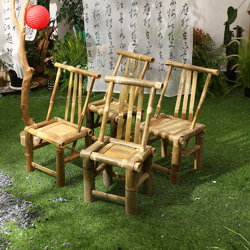 대나무 의자와 대나무 테이블 조합 야외 안뜰 레저 식사 및 차 테이블 향수 복고풍 스타일 수제 구식 대나무 테이블 g&스토어 가기