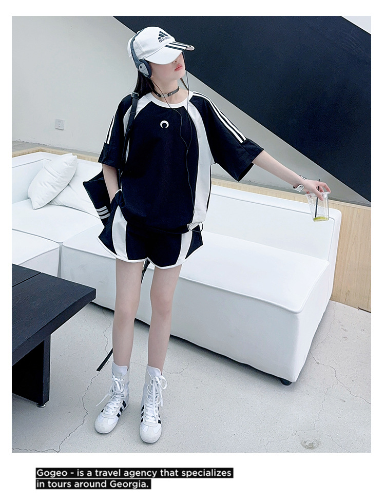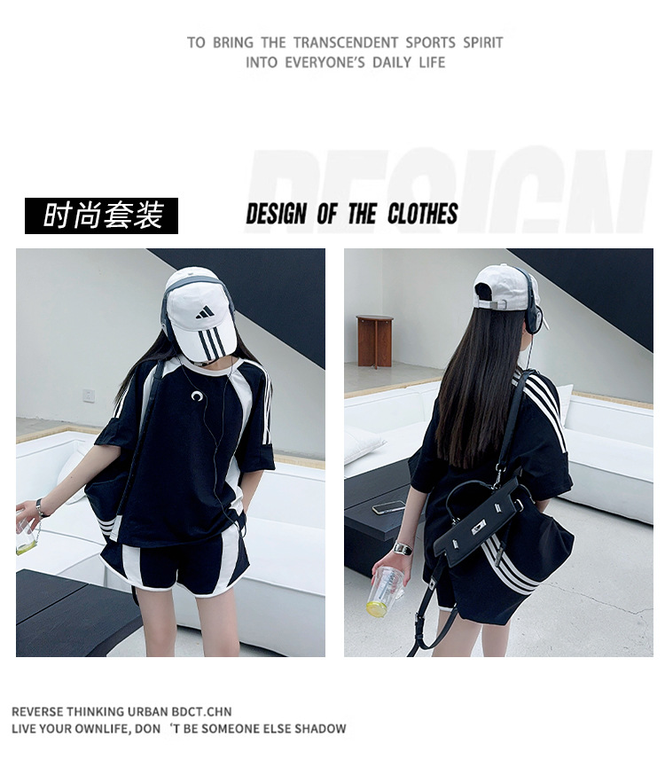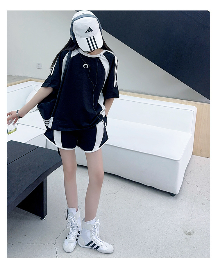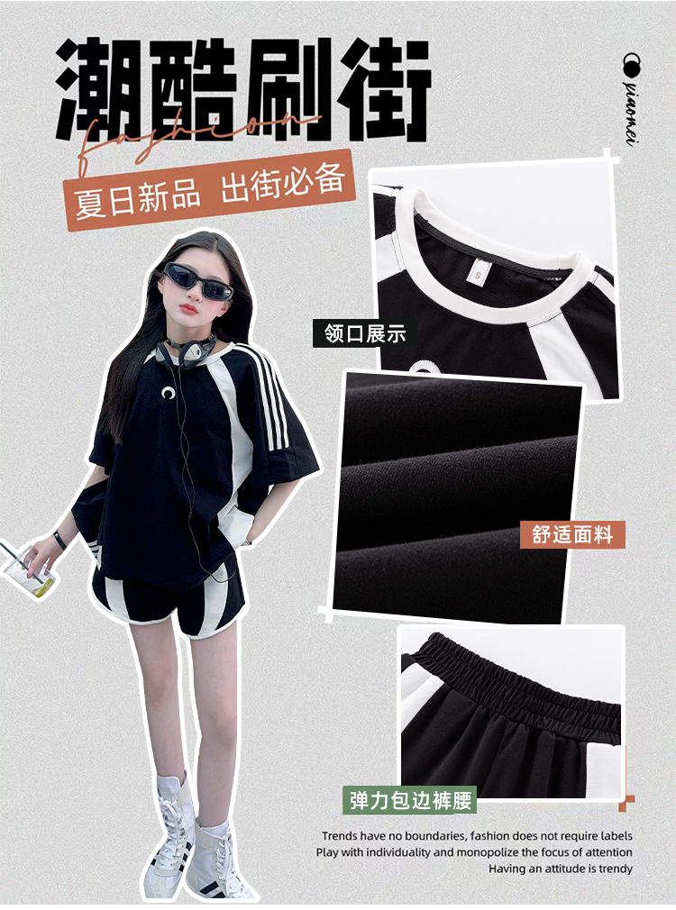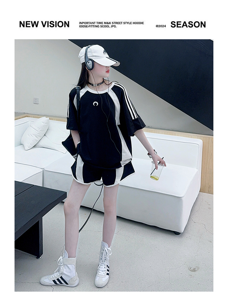 국경 간 여자 반팔 스포츠 세트 2025 새로운 어린이 캐주얼 반팔 티셔츠 느슨한 반바지 투피스 유행 세트스토어 가기