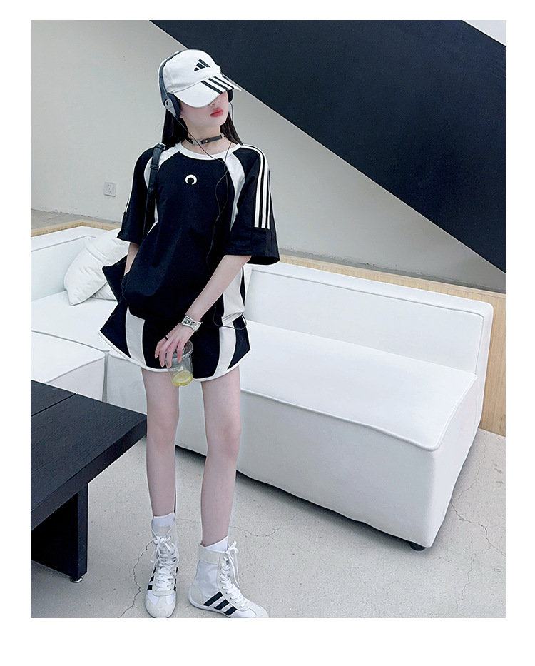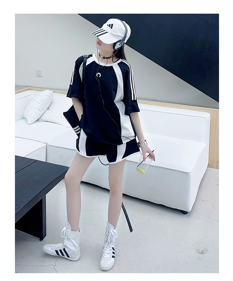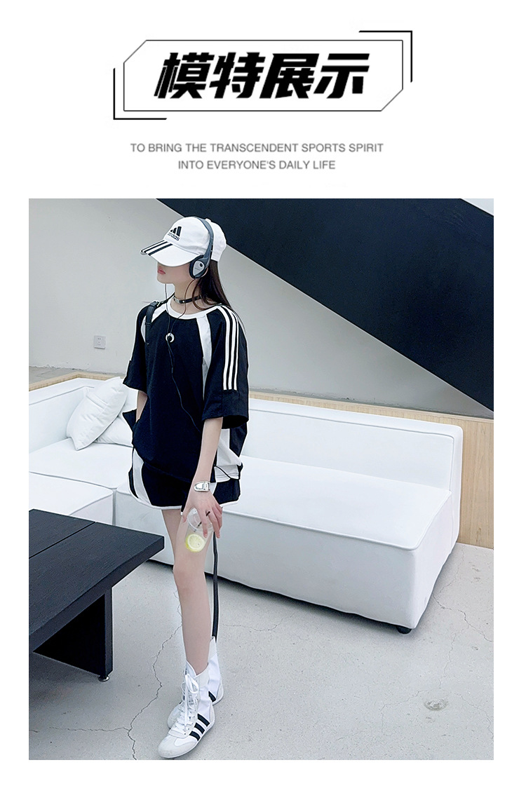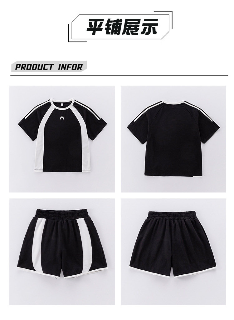 국경 간 여자 반팔 스포츠 세트 2025 새로운 어린이 캐주얼 반팔 티셔츠 느슨한 반바지 투피스 유행 세트스토어 가기