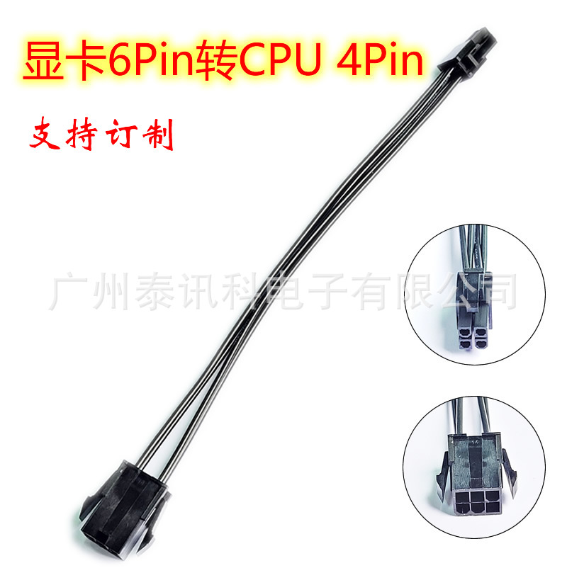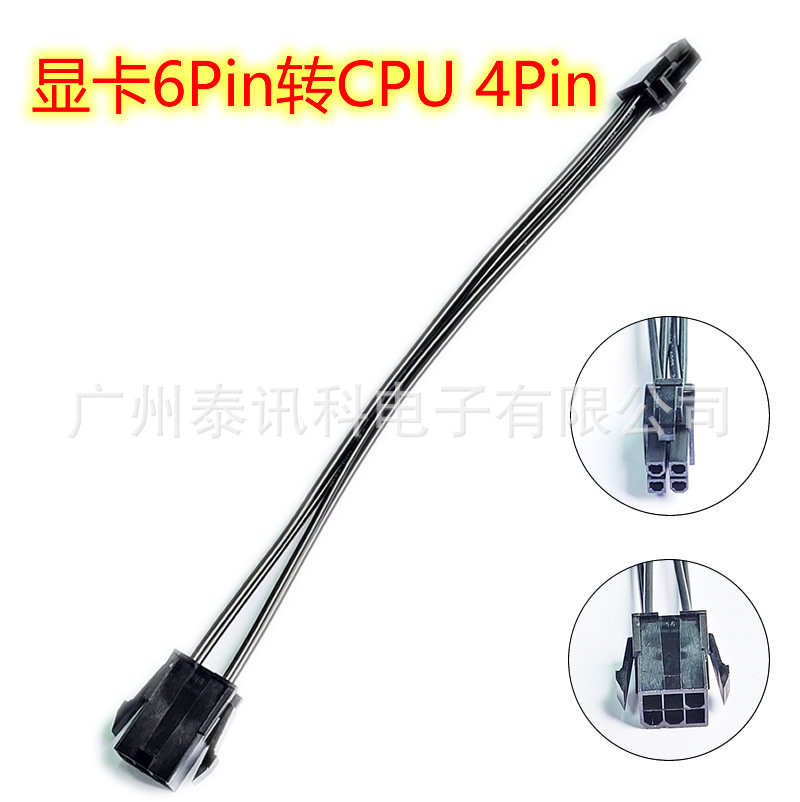 显卡电源6pin转CPU主板4pin供电转接线主机主板延长连接线模组线