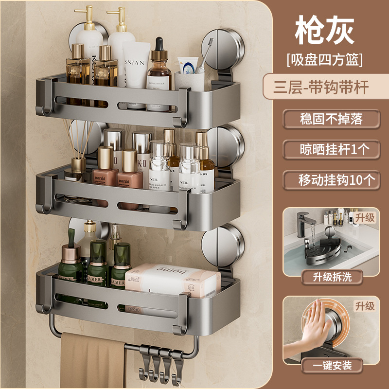 • 건 애쉬 [6.8cm 막대 포함] 흡입 컵 - 3단 사각 바구니