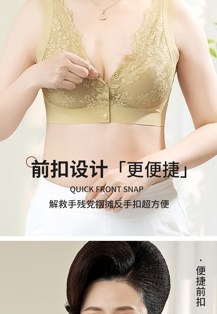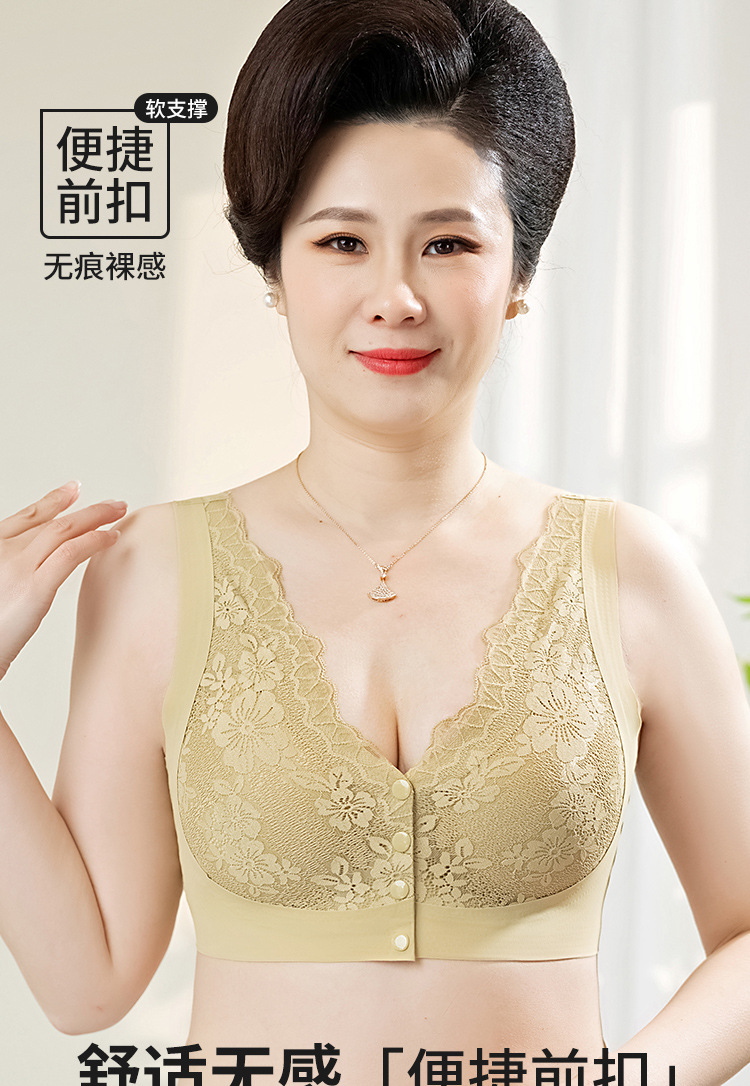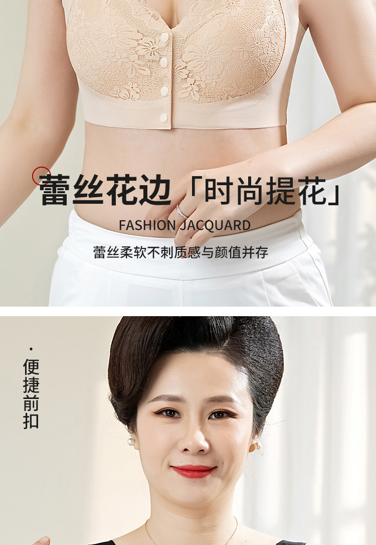 플러스 사이즈 섹시한 레이스 앞 버튼 엄마 브라, 큰 가슴, 작은 가슴 속옷, 테두리 없음, 중년 및 노년 여성 브라스토어 가기