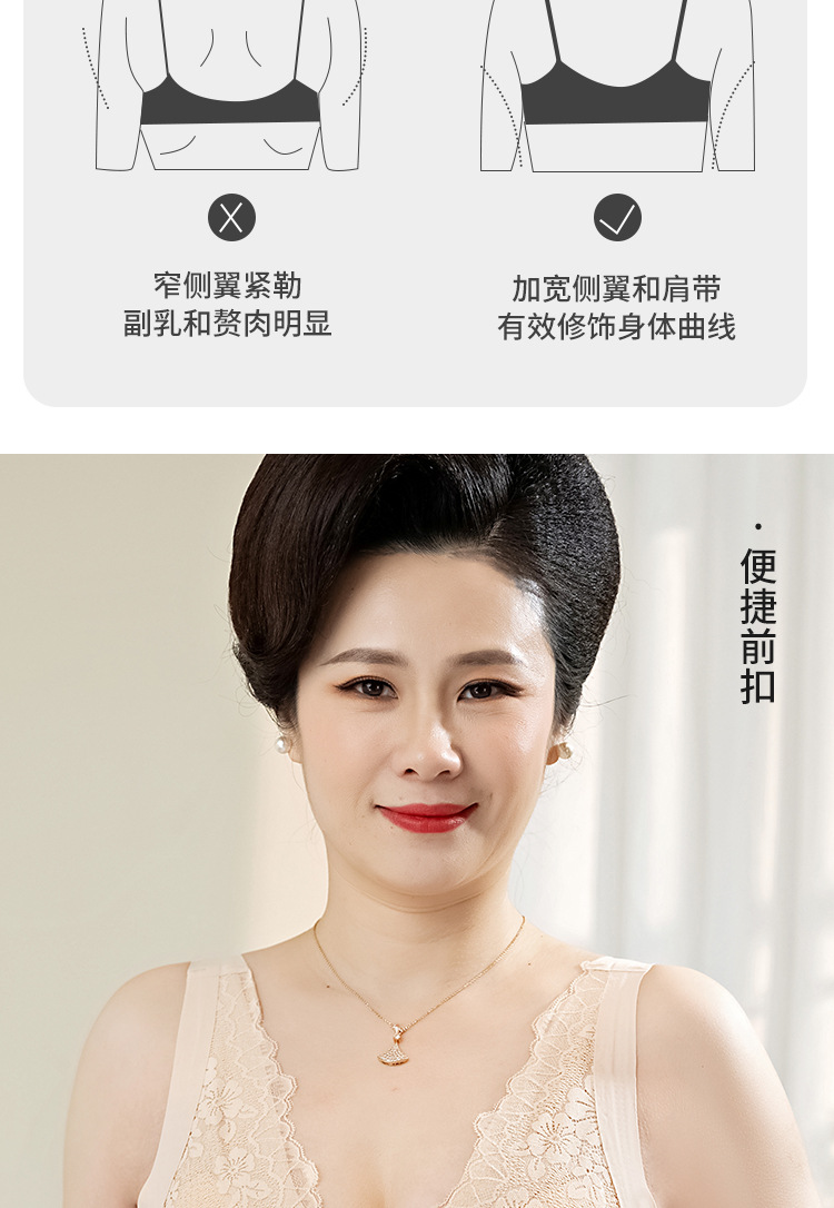 플러스 사이즈 섹시한 레이스 앞 버튼 엄마 브라, 큰 가슴, 작은 가슴 속옷, 테두리 없음, 중년 및 노년 여성 브라