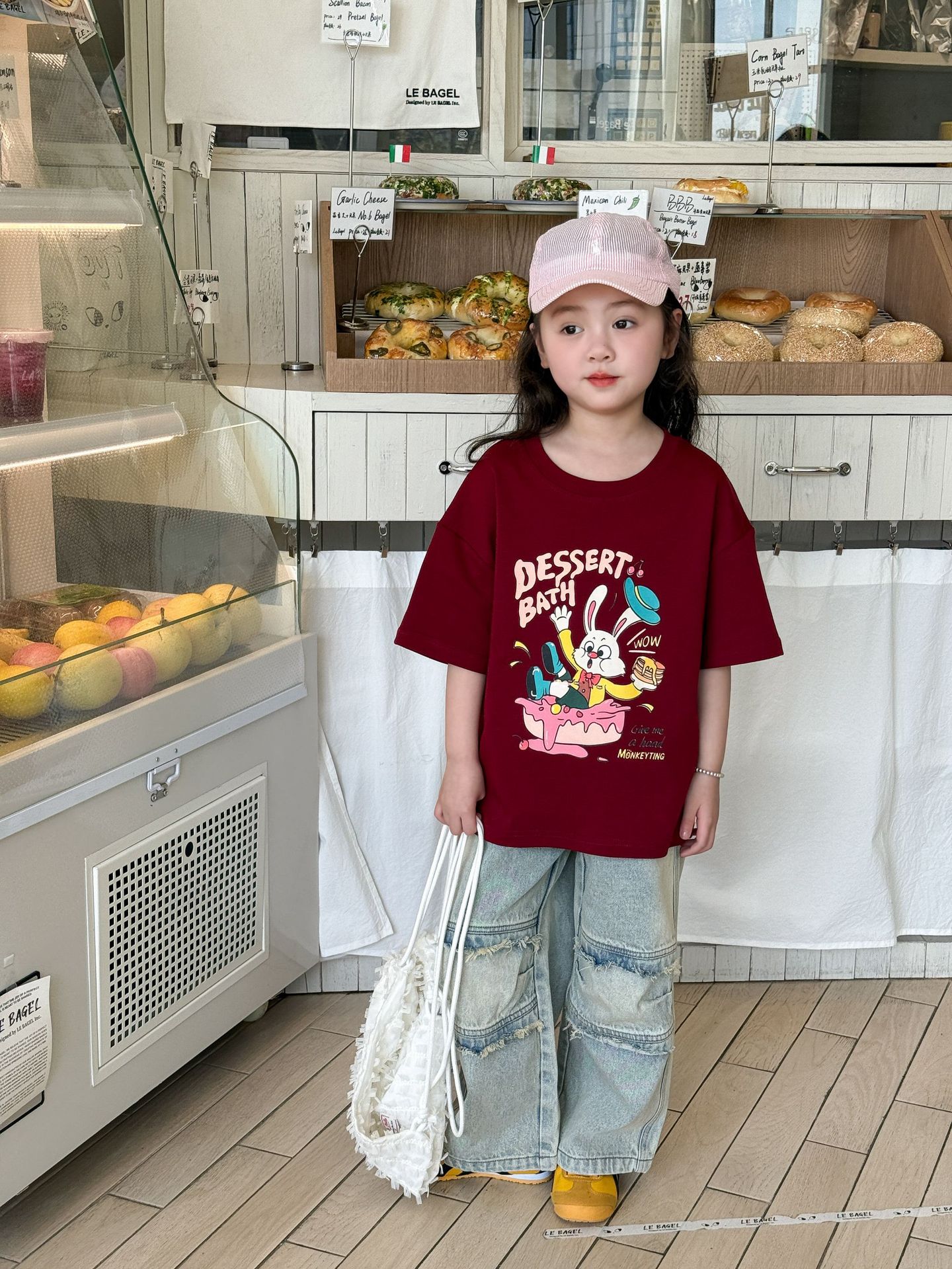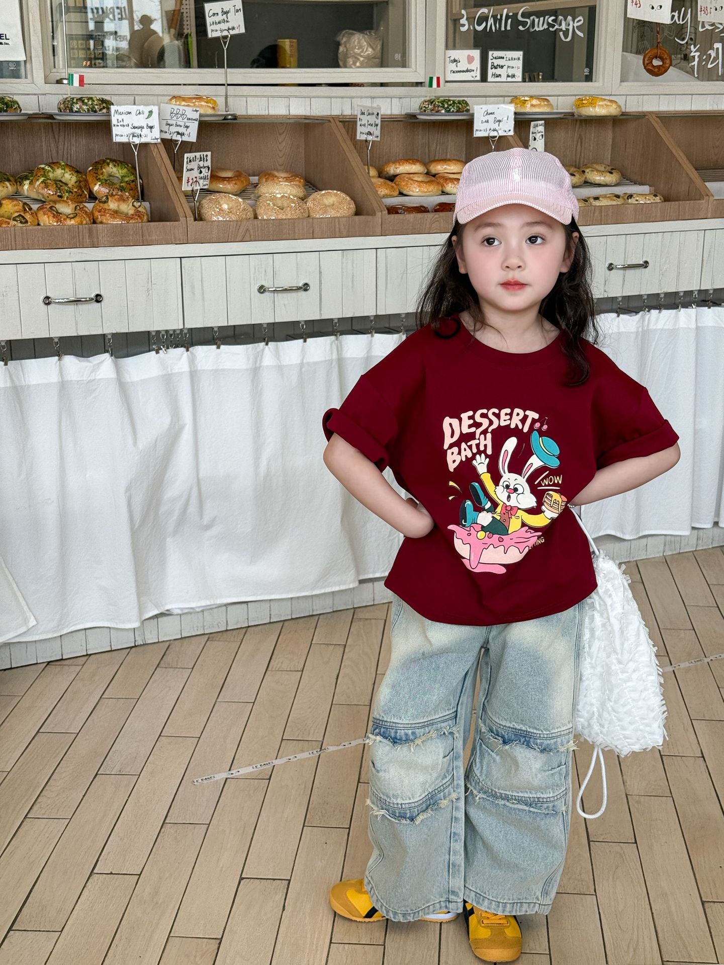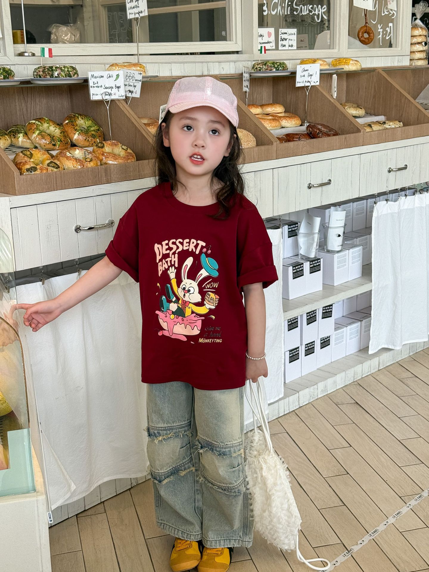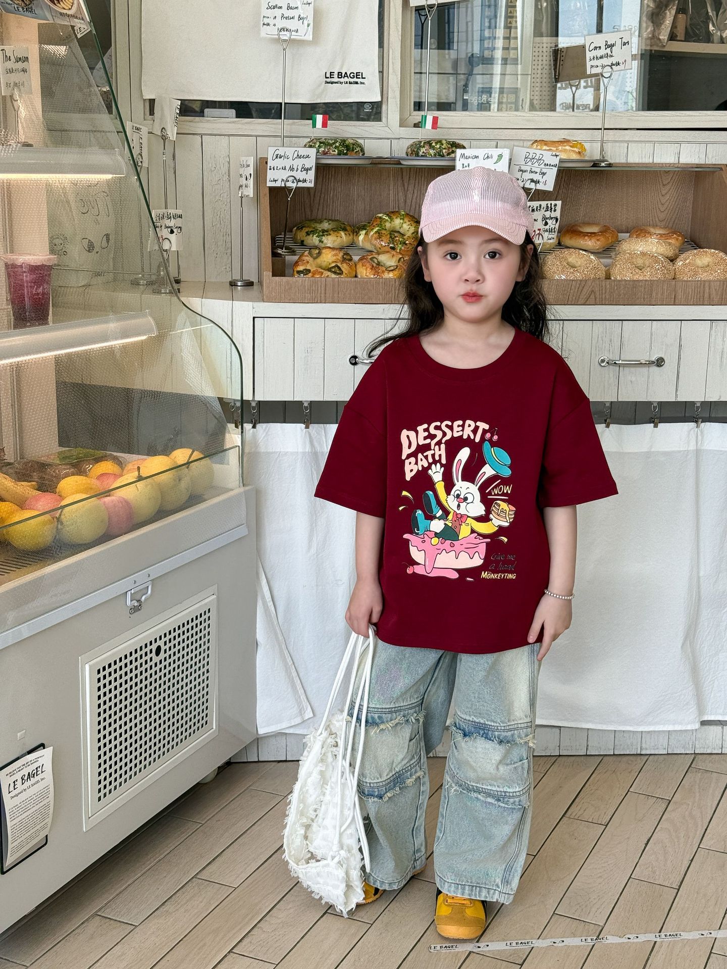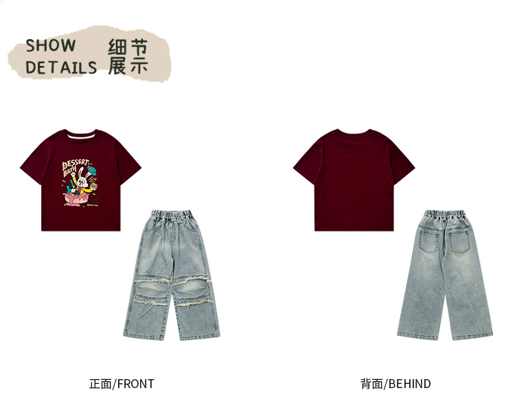 버우드 아동복 소녀 짧은 소매 세트 여름 2025 새로운 어린이 한국 티셔츠 청바지 아기 소녀 옷스토어 가기