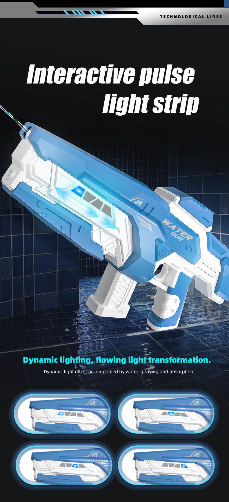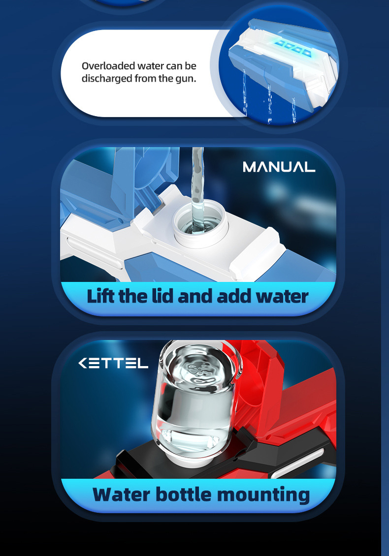 국경 간 신제품 전기 물총 장난감 연속 감지 자체 흡입 펄스 물총 대용량 멋진 조명 플러스 물병