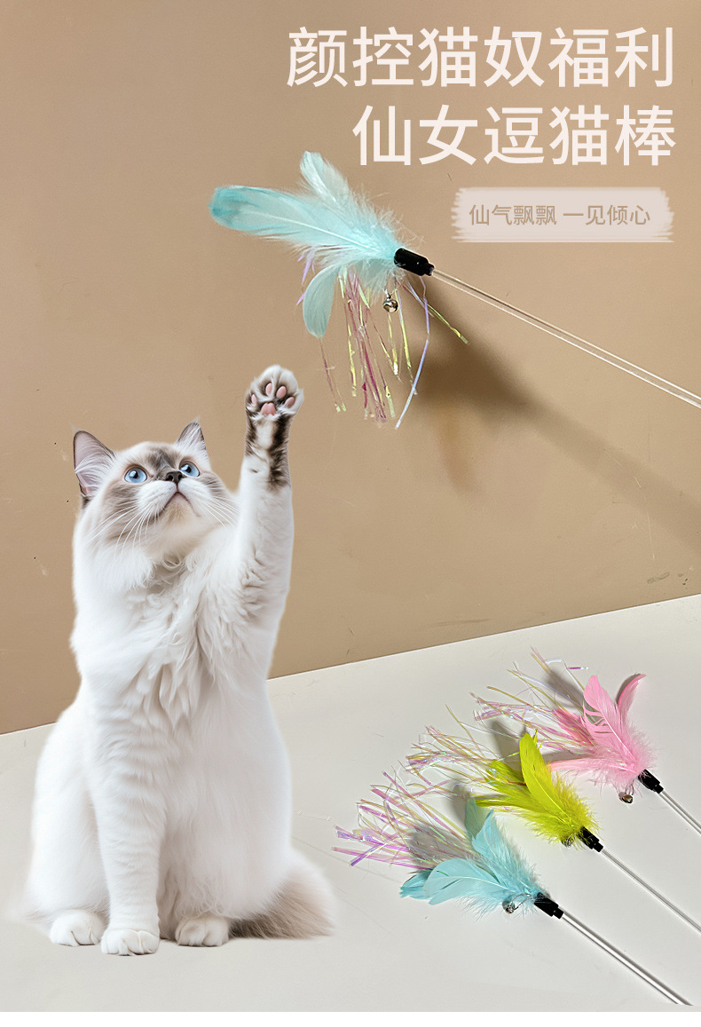 새로운 재미있는 고양이 장난감 국경 요정 크리스탈 재미있는 고양이 스틱 긴 막대 색상 깃털 리본 고양이 장난감 재미있는 고양이 장난감스토어 가기