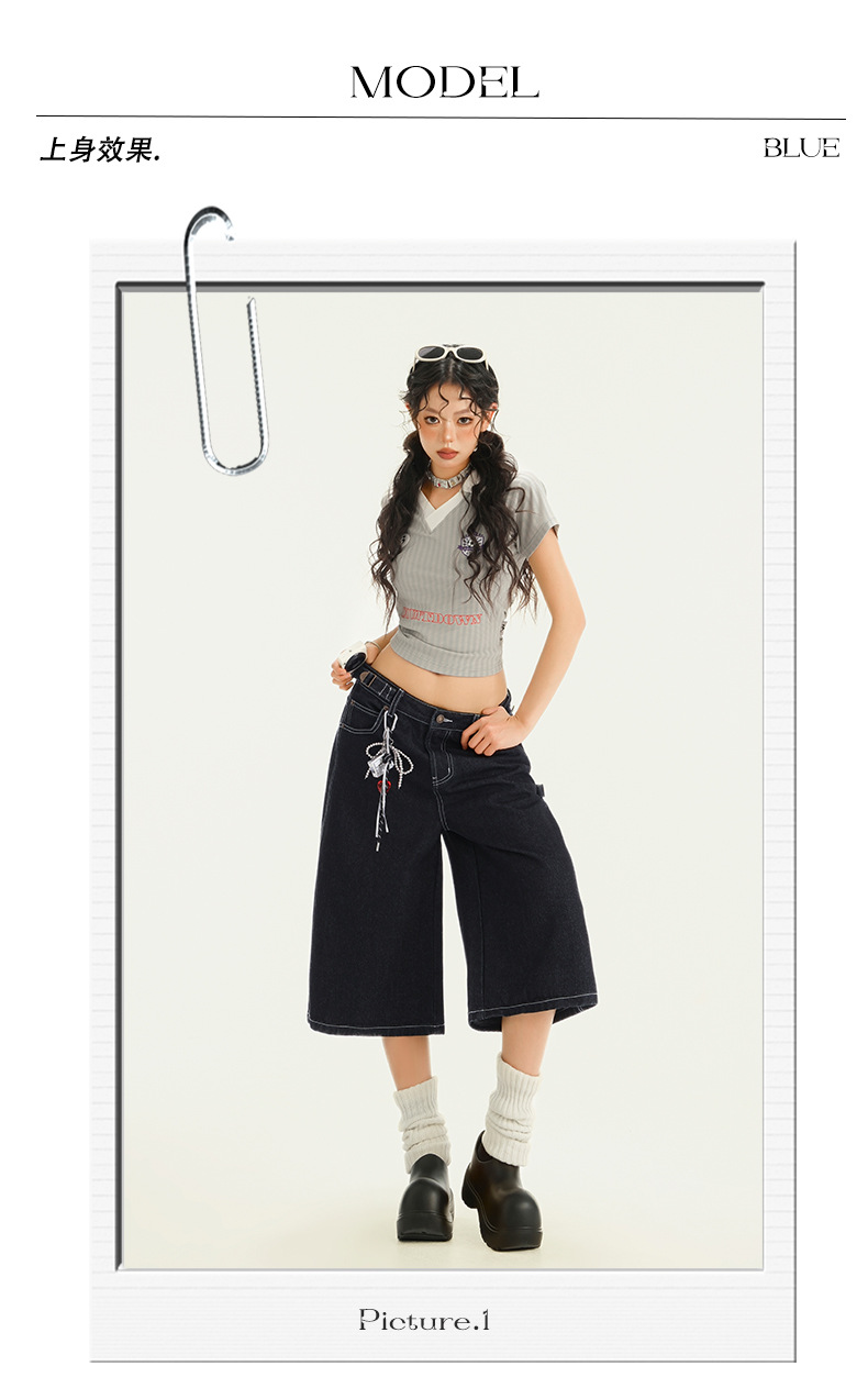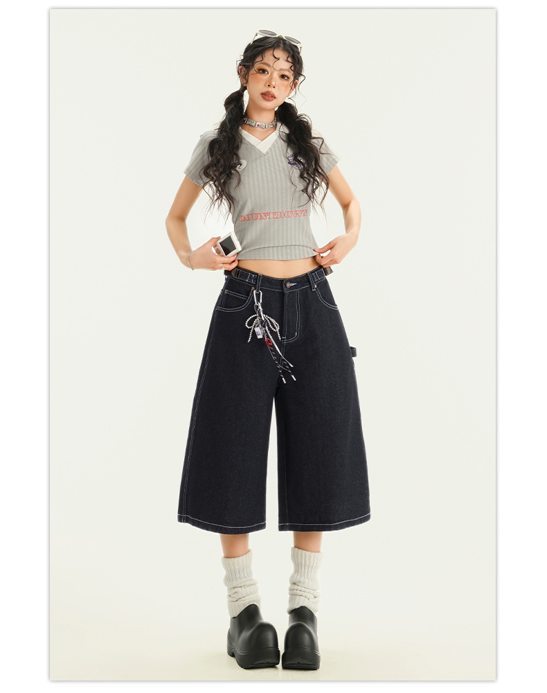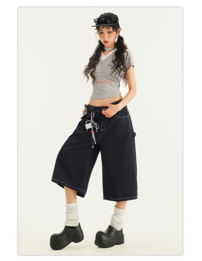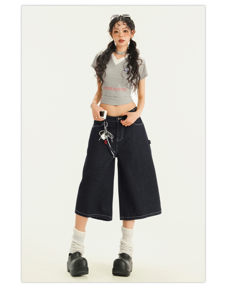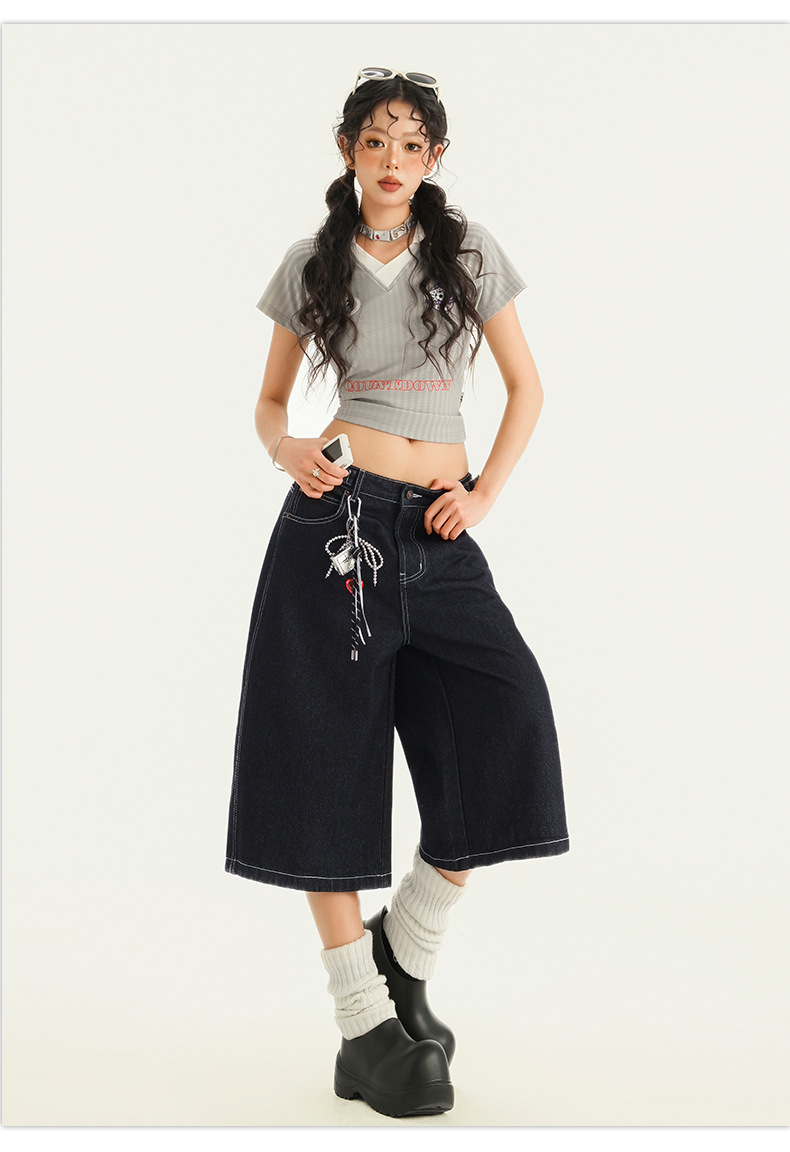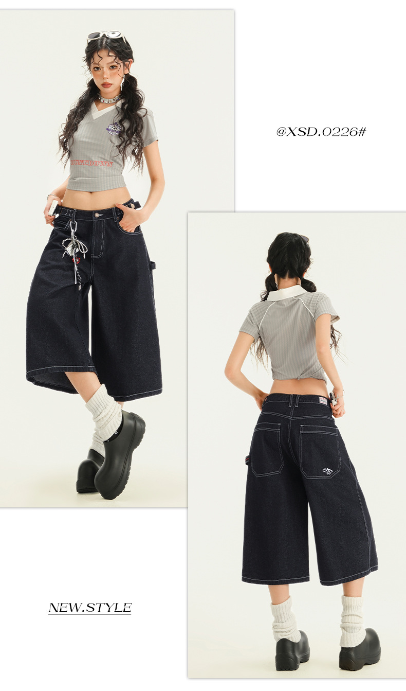 25 번째 ootd! 미국 레트로 와이드 레그 봄과 여름 새로운 스트레이트 튜브 느슨한 세척 오래된 프라이드 스트리트 자른 바지스토어 가기