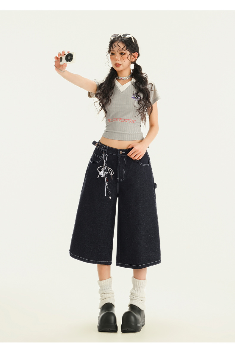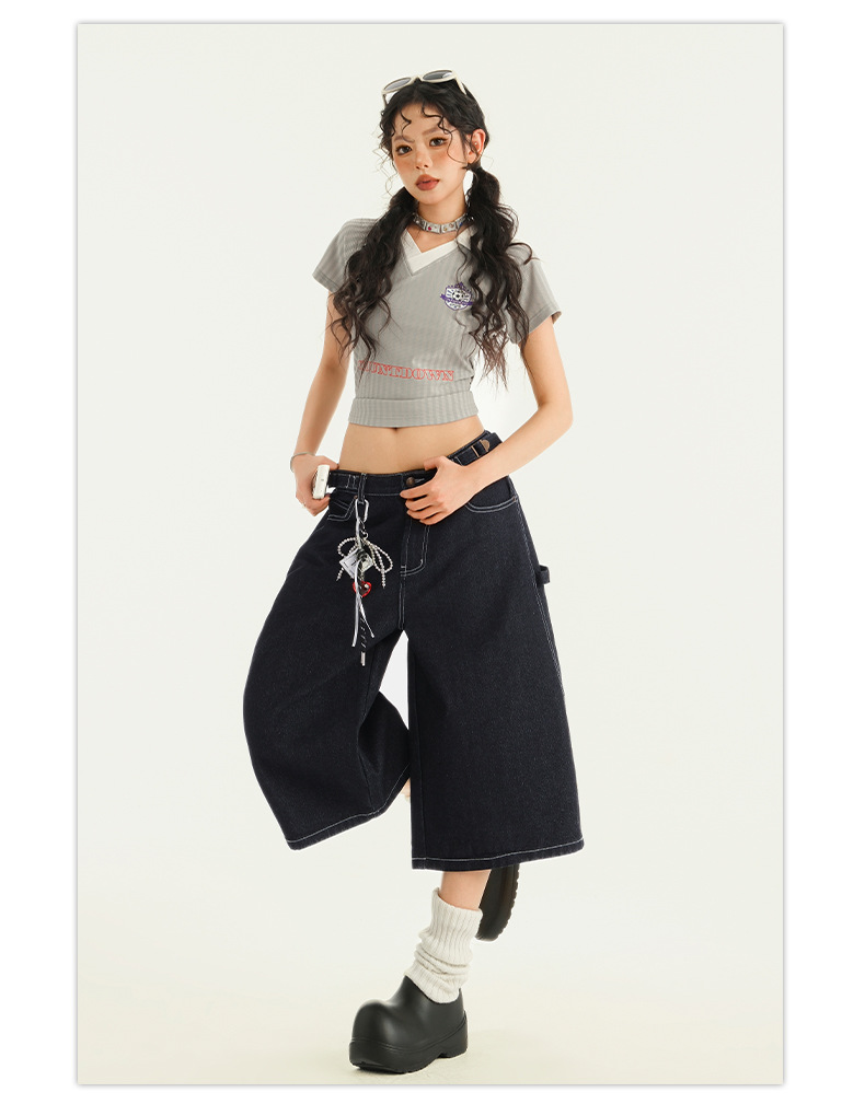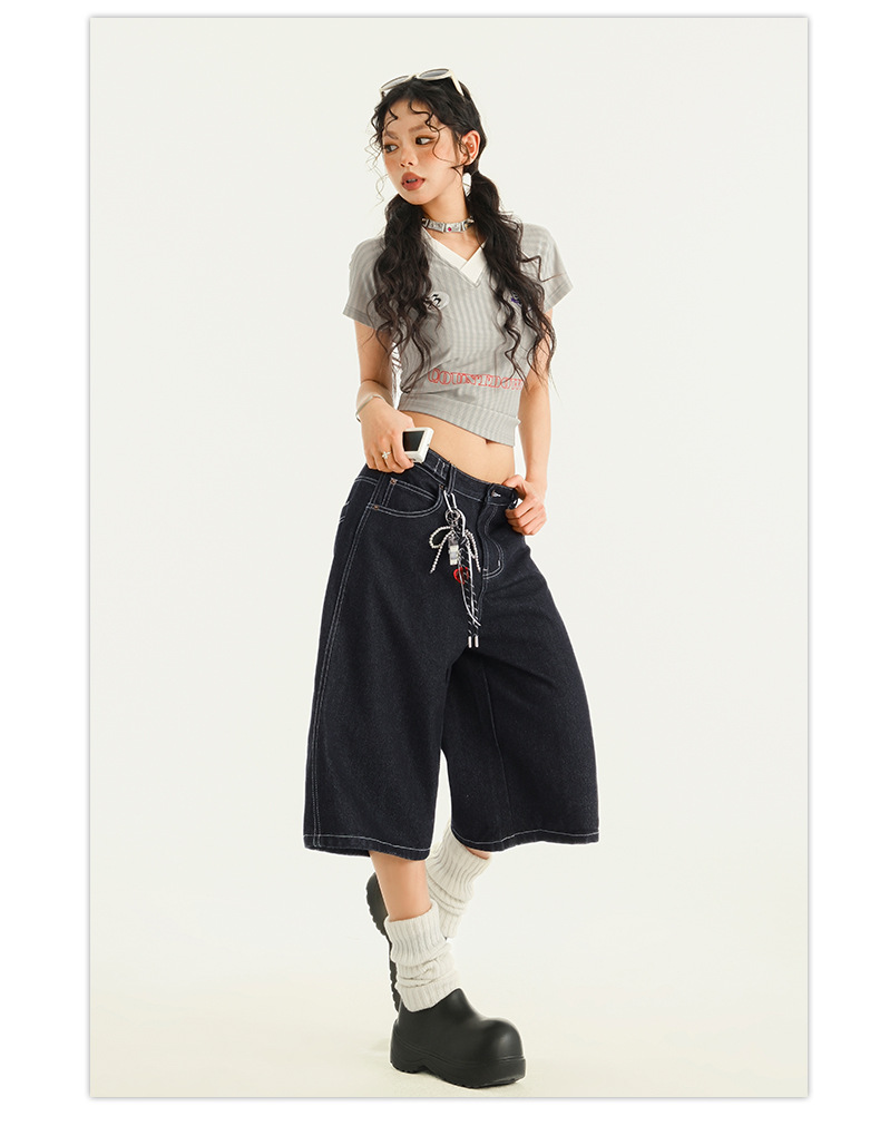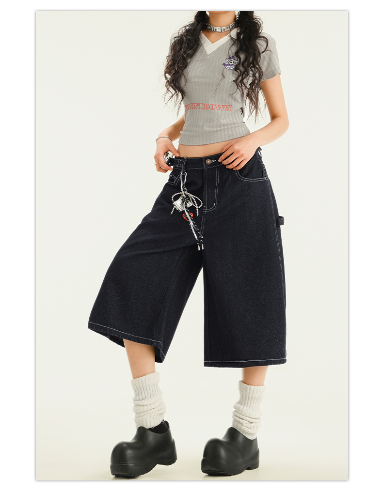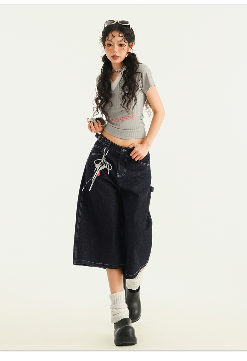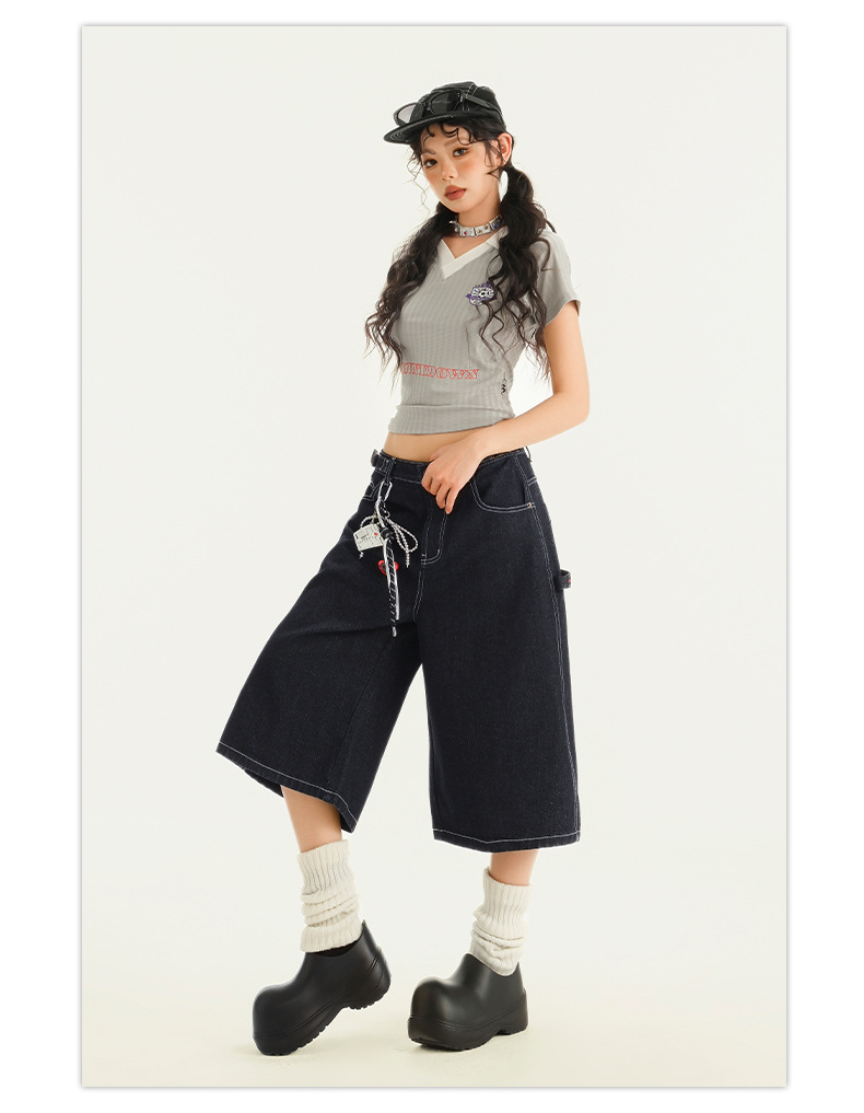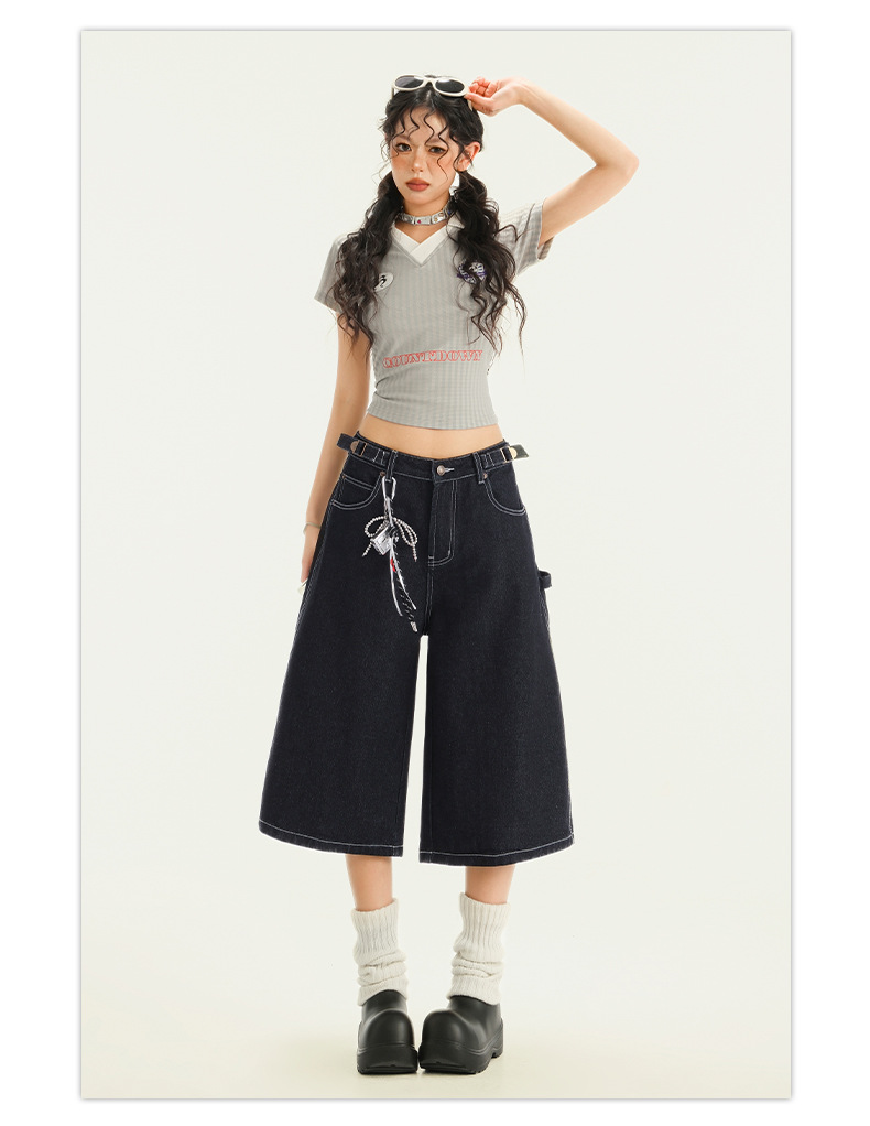 25 번째 ootd! 미국 레트로 와이드 레그 봄과 여름 새로운 스트레이트 튜브 느슨한 세척 오래된 프라이드 스트리트 자른 바지스토어 가기