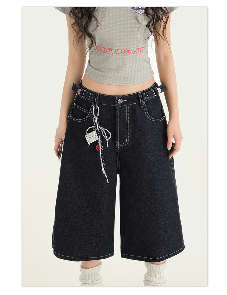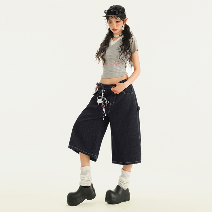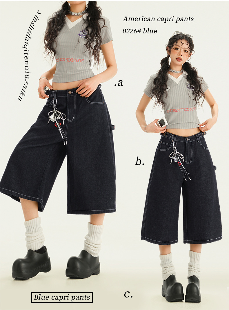 25 번째 ootd! 미국 레트로 와이드 레그 봄과 여름 새로운 스트레이트 튜브 느슨한 세척 오래된 프라이드 스트리트 자른 바지
