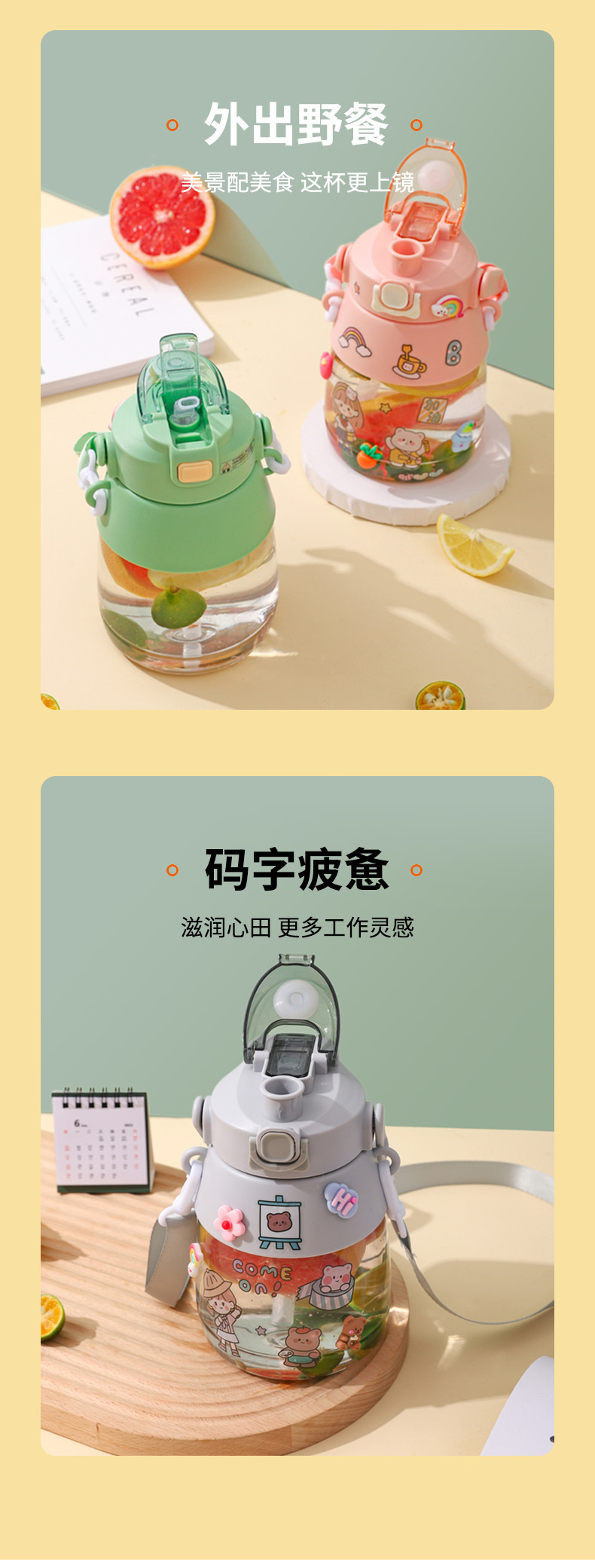 대용량 플라스틱 절연 물컵, 인터넷 연예인, 고급스러운 더블 드링크 배꼽 컵, 창의적인 어린이 및 학생 휴대용 물병스토어 가기