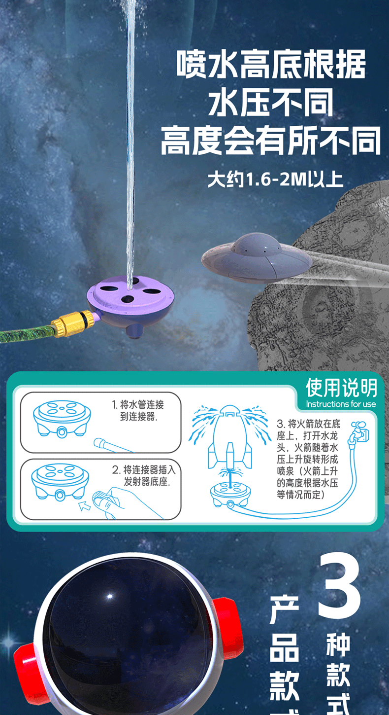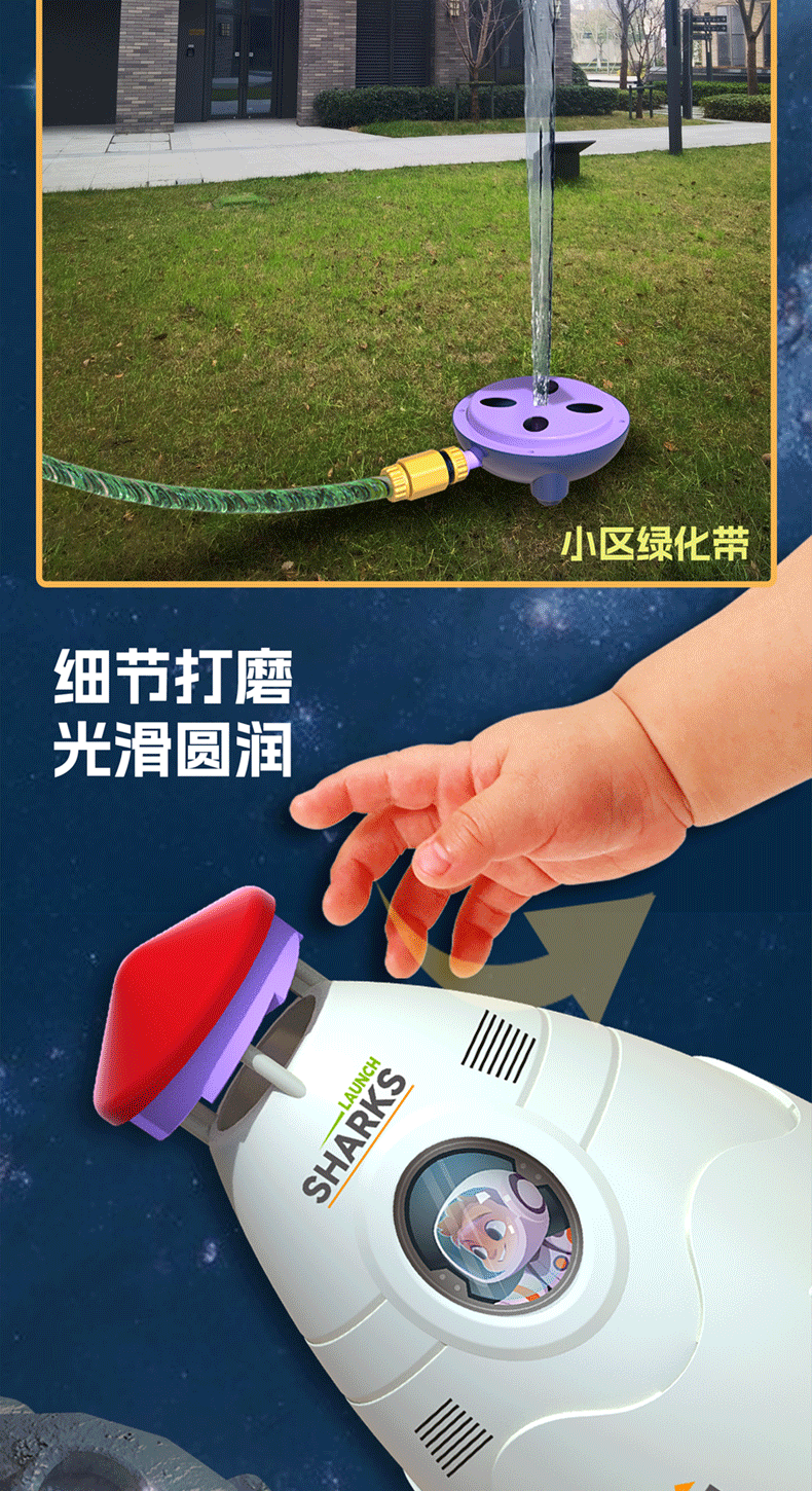 跨境旋转发射洒水器浇花神器户外飞天喷水冲天火箭儿童戏水玩具