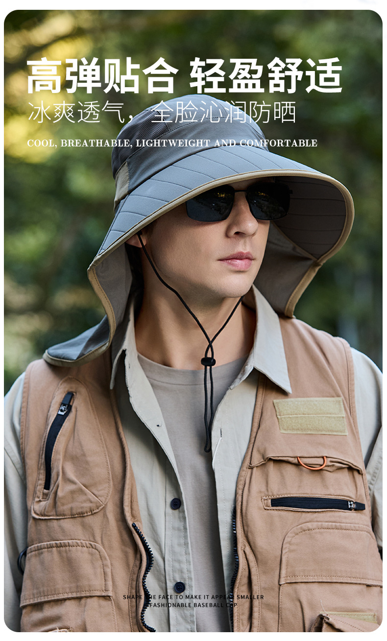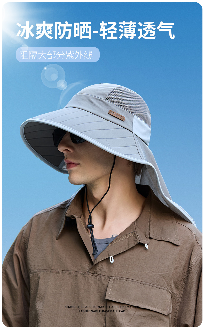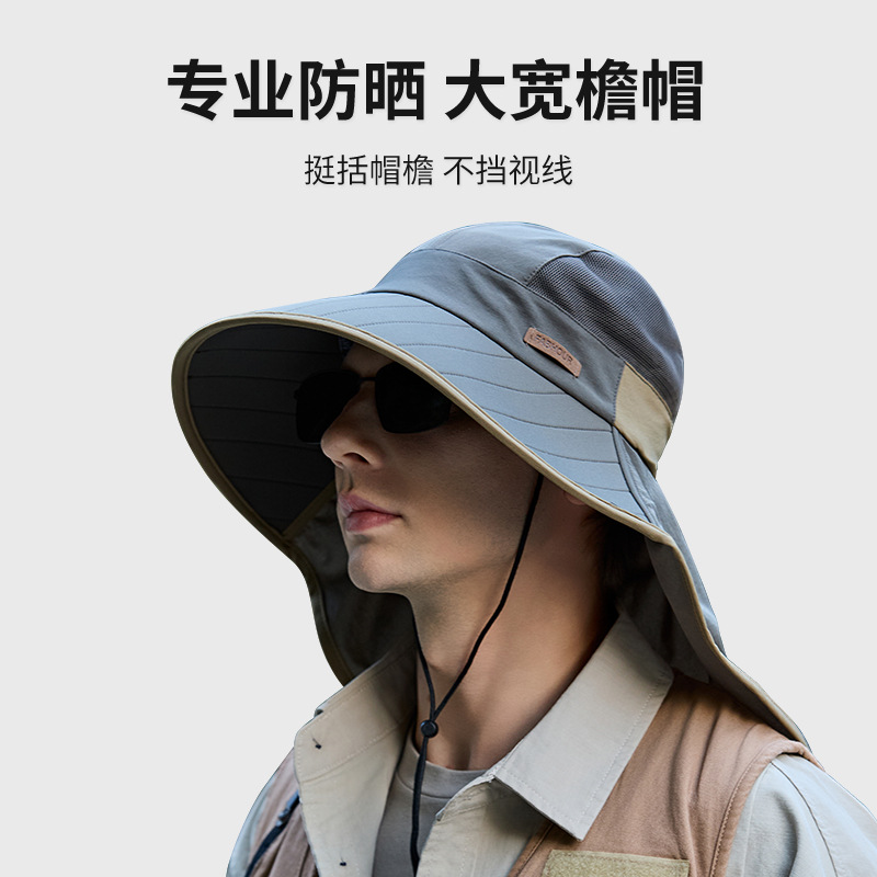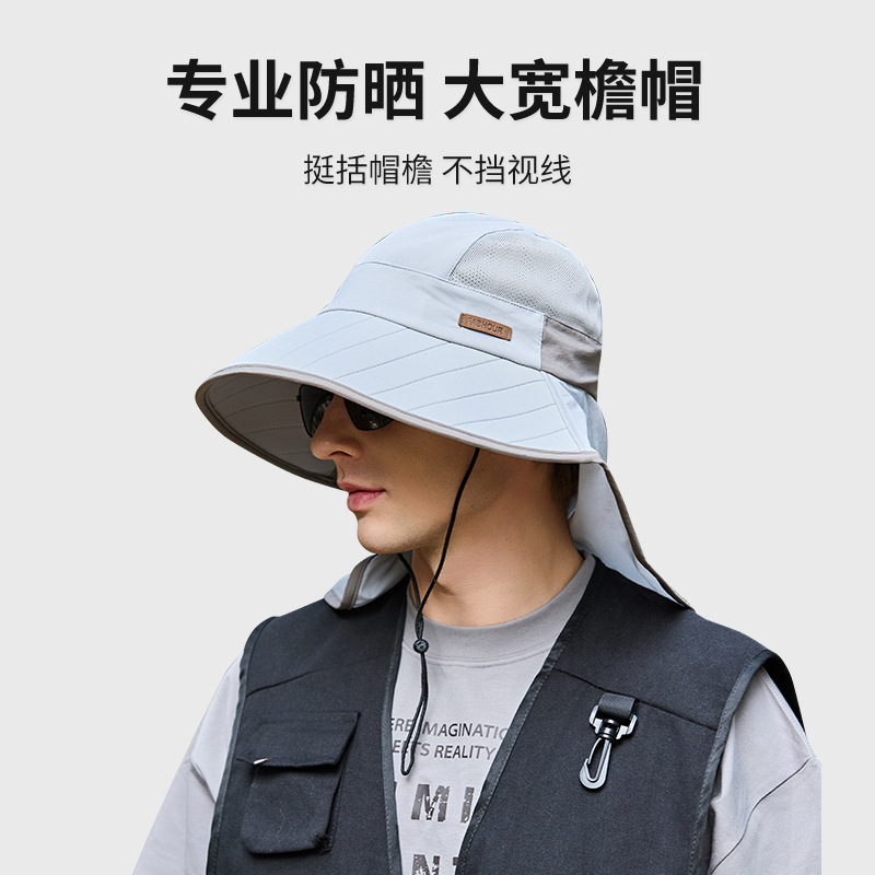 새로운 태양 보호 모자 남자 목 보호대 큰 챙 낚시 모자 등산 모자 야외 통기성 목도리 태양 모자