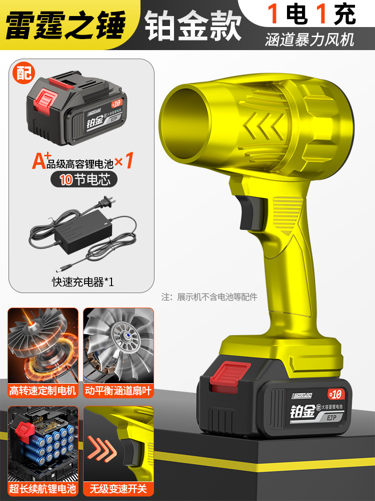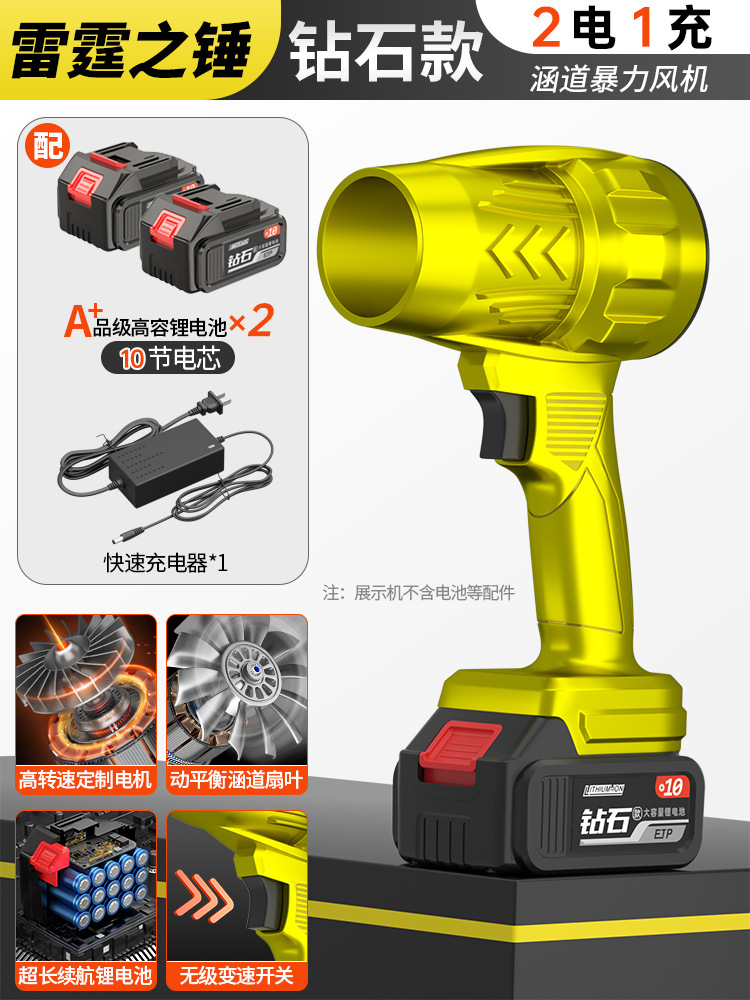 • [썬더해머-옐로우] DY 덕트 폭력팬 다이아몬드 모델(10섹션) 배터리 2개 및 1회 충전