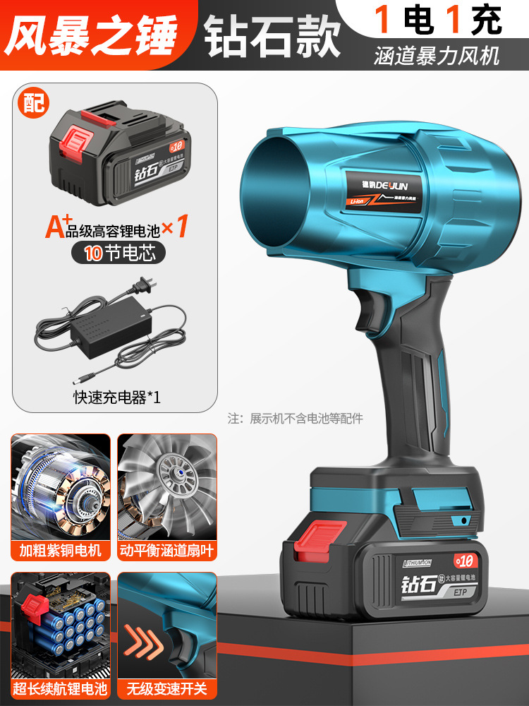 • [스톰해머-블루] DY 덕트 폭력풍 팬 다이아몬드 모델 [10섹션] 배터리 2개 및 1회 충전