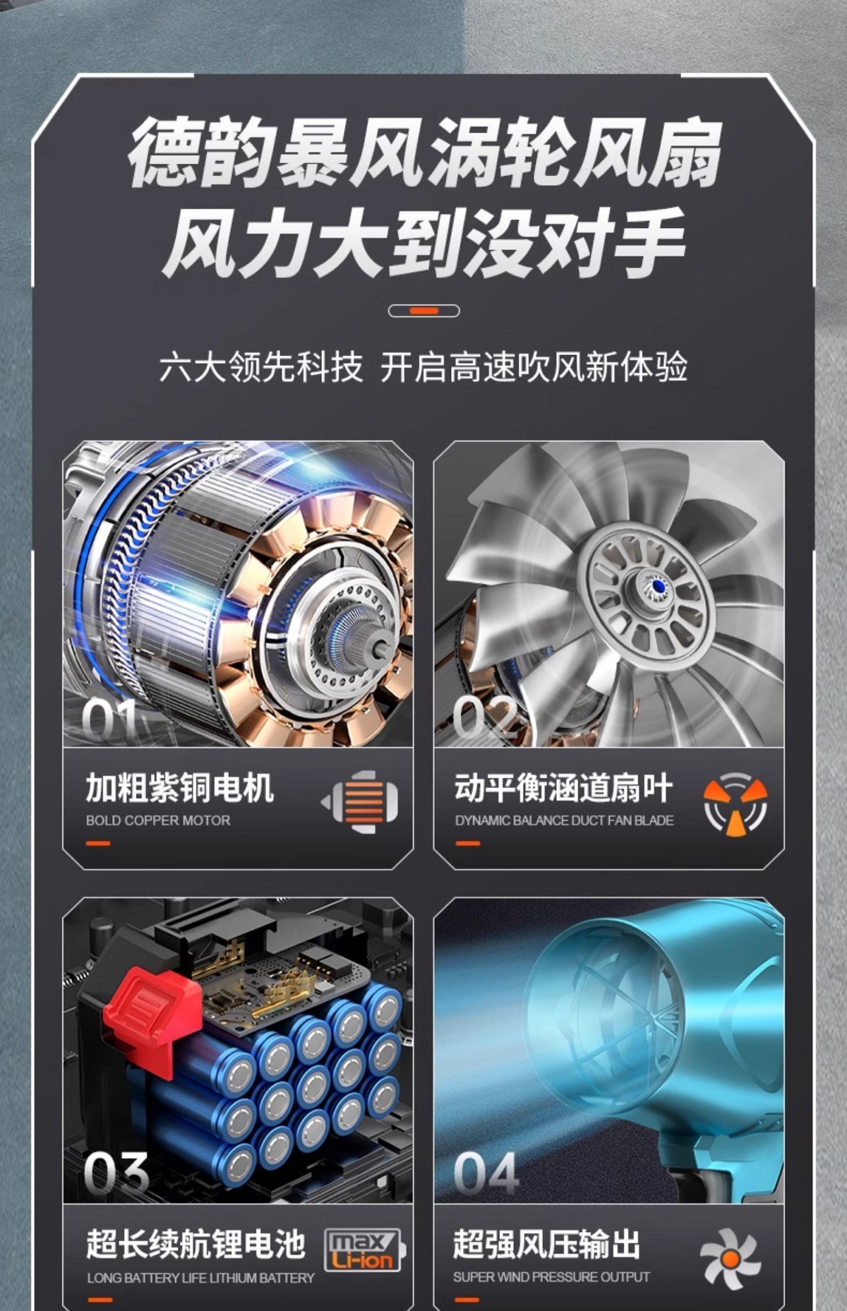 • [스톰해머-블루] DY 덕트 폭력풍력왕 모델 [15섹션] 배터리 2개, 1회 충전