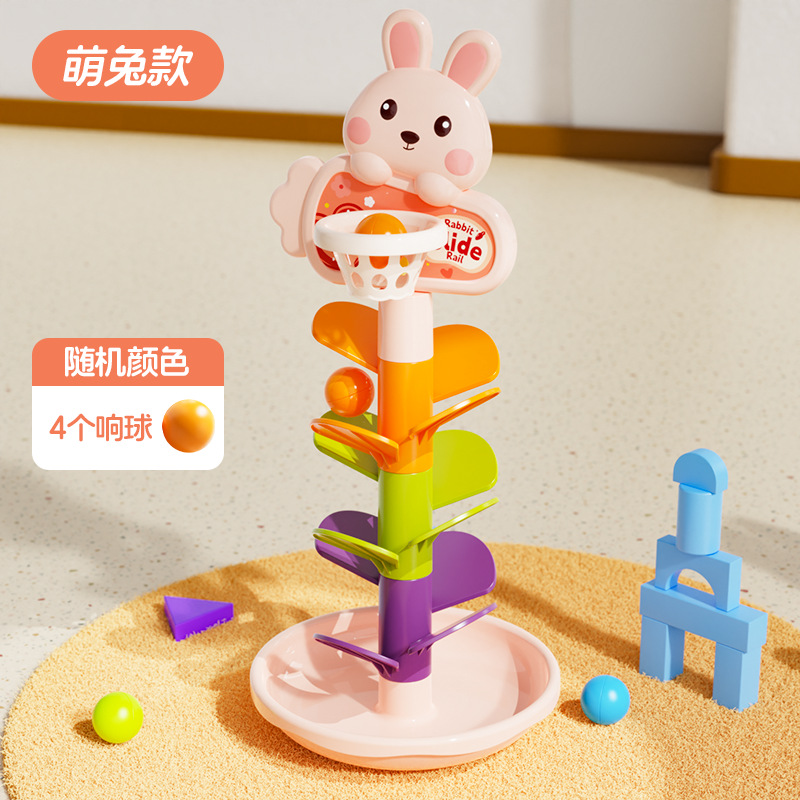 맞춤형 어린이 스택 음악 촬영 트랙 터닝 음악 아기 롤링 볼 슈팅 활공 타워 핸드 헬드 볼 장난감스토어 가기