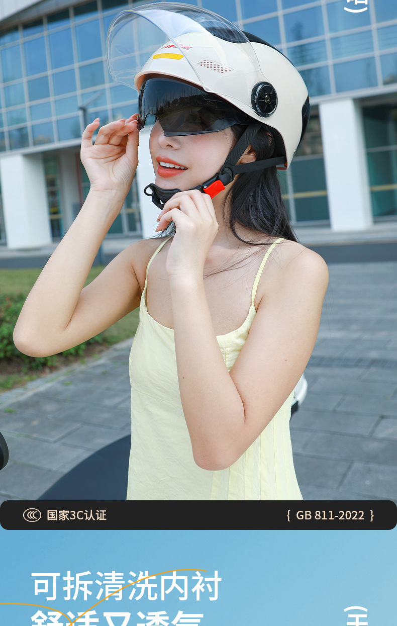 오토바이 전기 자동차 헬멧 3C 인증 여름 큰 선 루프 테두리 반 헬멧 남자와 여자 빛 새로운 헬멧스토어 가기