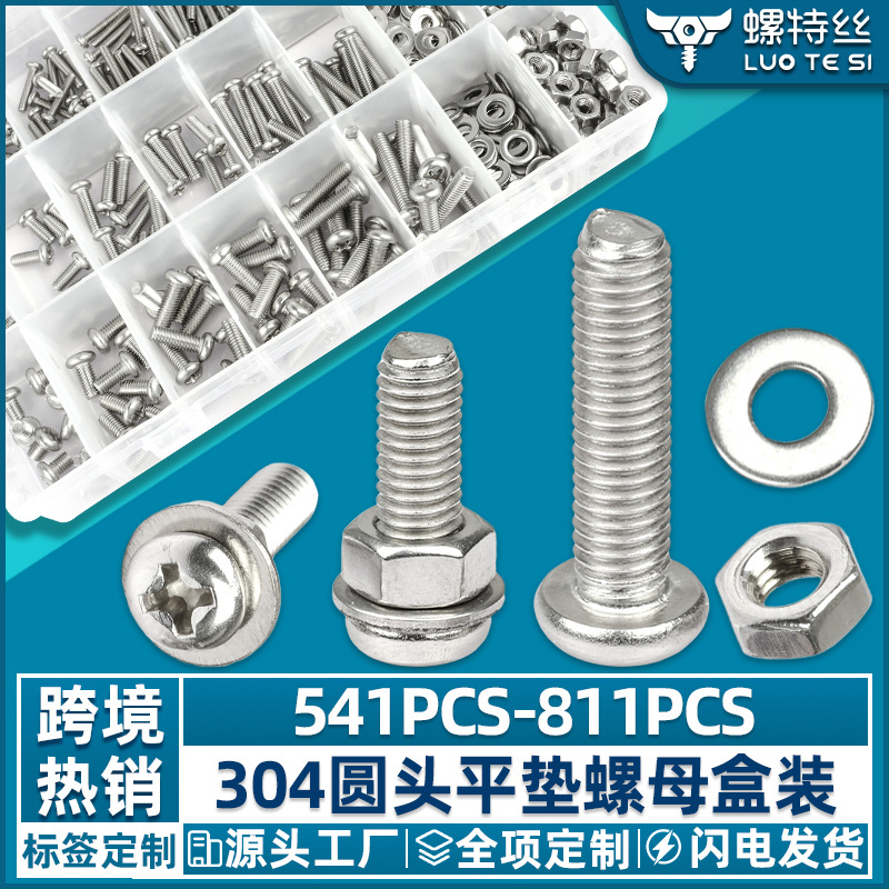 541/721/811PCS 박스 필립스 라운드 헤드 스크류 팬 헤드 너트 플랫 패드 조합 세트 스크류 M3 | M4