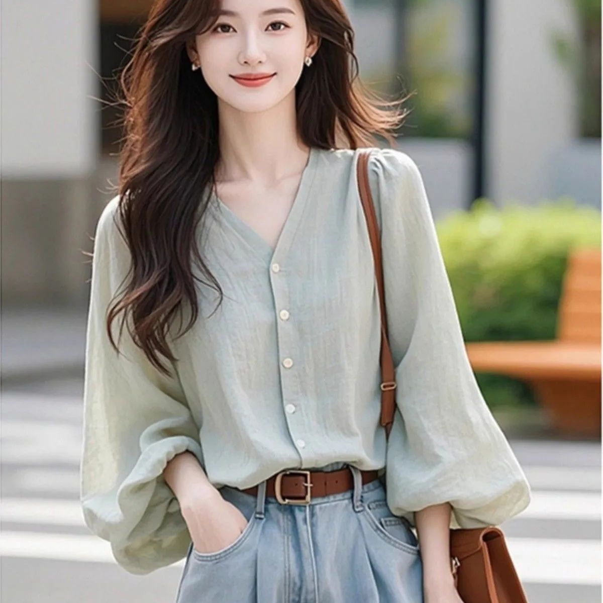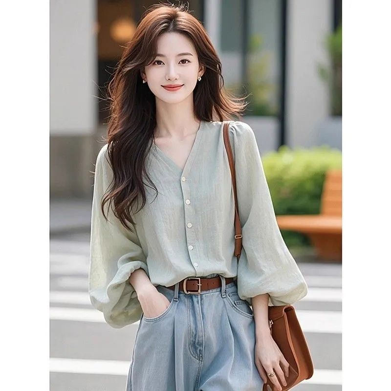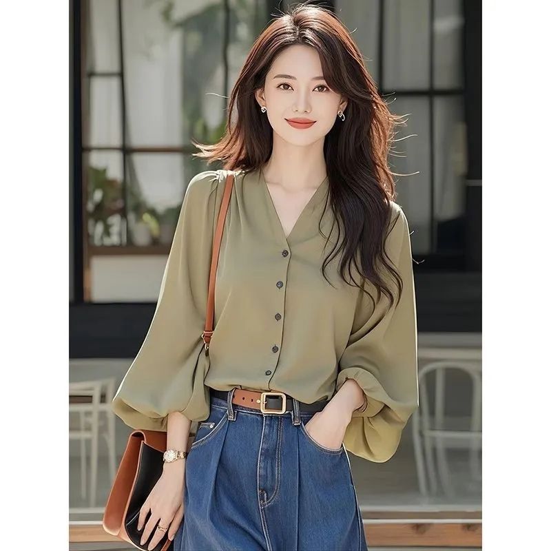 여성을 위한 프렌치 스타일 긴팔 셔츠 2024 초가을 새로운 스타일 독특하고 아름답고 멋진 칼라 쉬폰 탑스토어 가기
