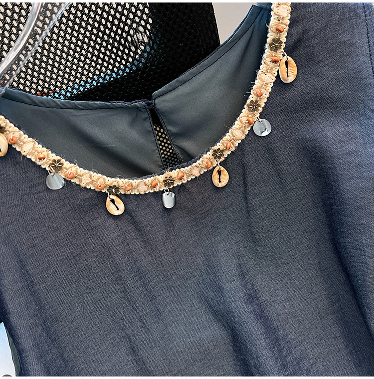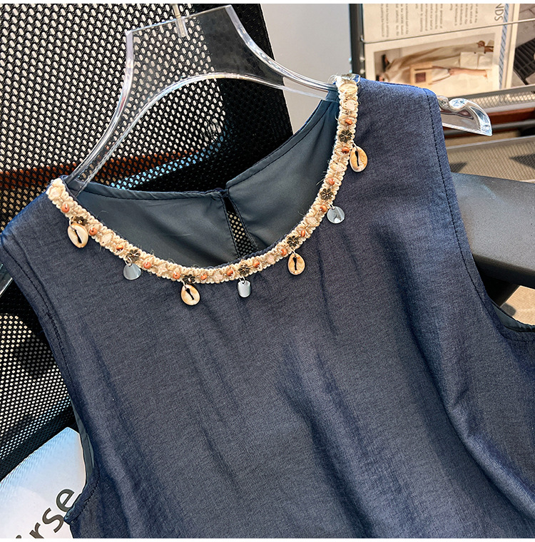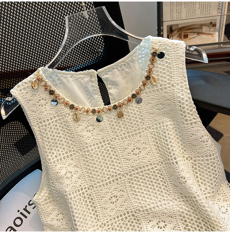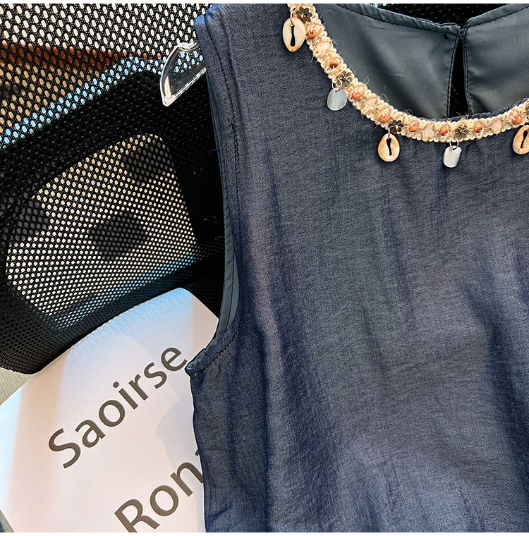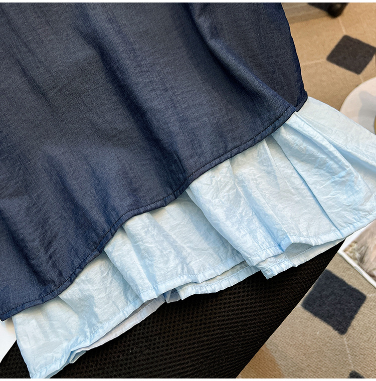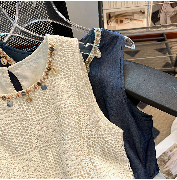 달콤한 스타일 가짜 두 조각 빈 민소매 셔츠 여성의 여름 새로운 서양 스타일 나이 감소 스티칭 짧은 티셔츠