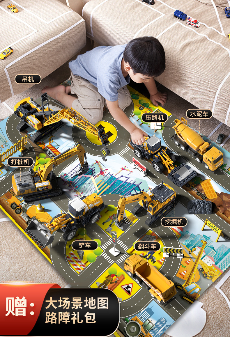 • 만푸 따뜻한 겨울 [합금 엔지니어링 차량 선물 상자] 7 엔지니어링 차량 선물 상자에는 지도 + 로드블록 선물 팩이 함께 제공됩니다.