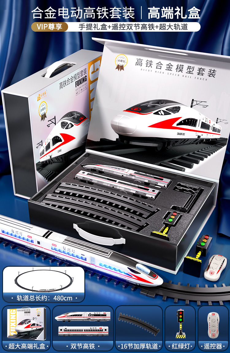 • [합금 원격 제어 고속철도 선로 고급 선물 상자] 이중 섹션 합금 고속철도 + 원형 레일 + 신호등 + 원격 제어 + 선물 상자