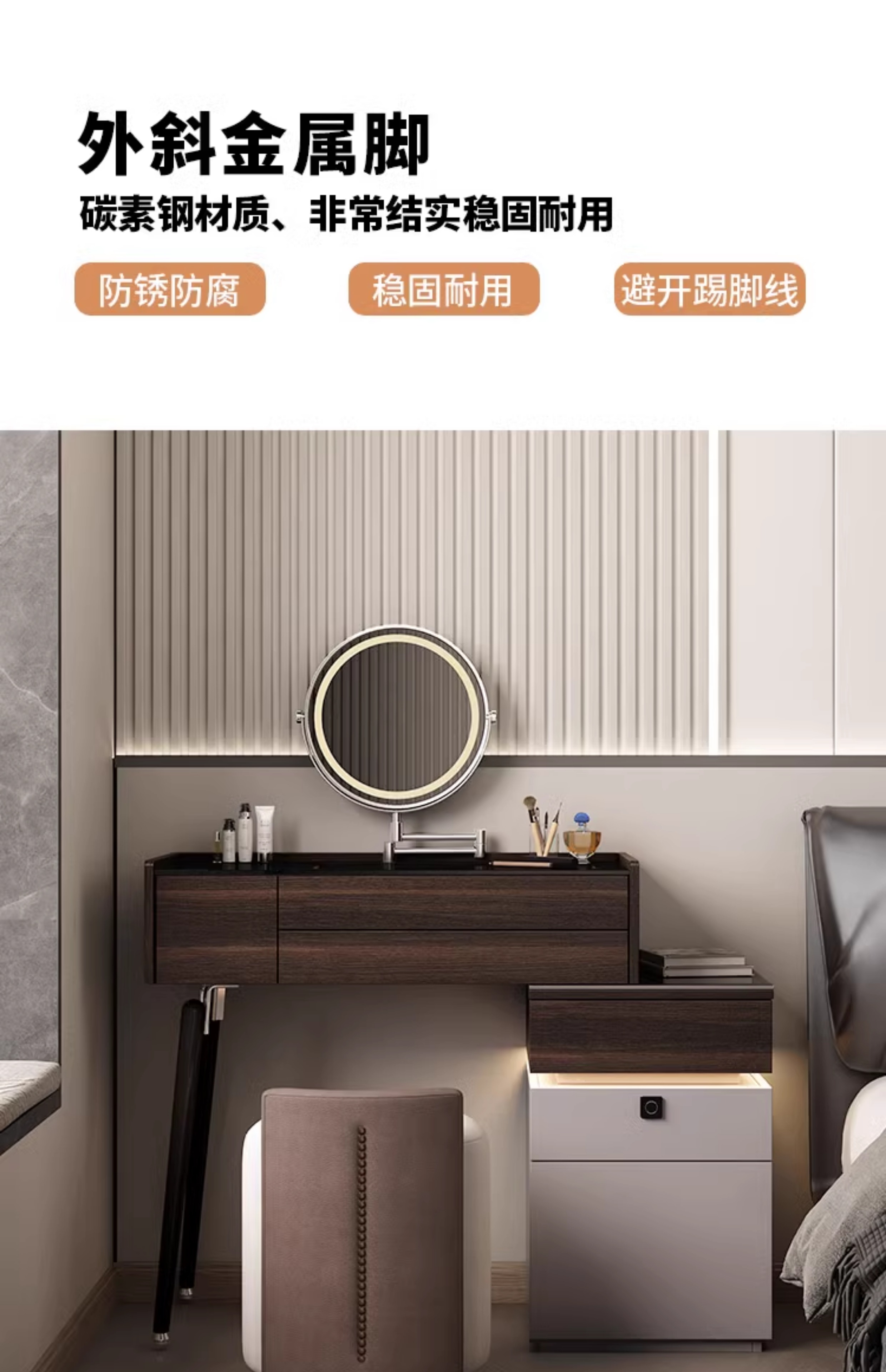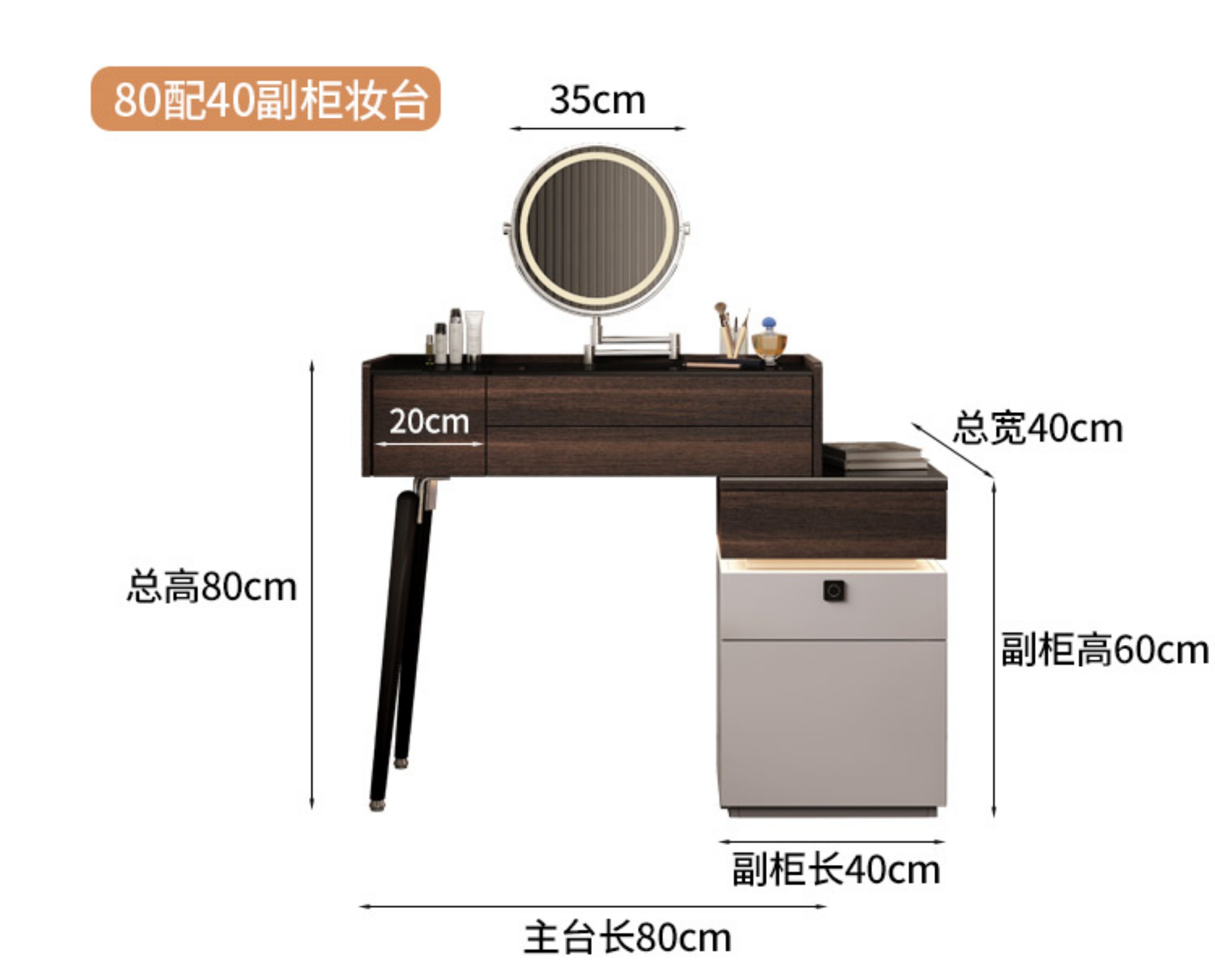 • εαβγδζ80cm 화장대/원목+접이식거울+스툴 εαβγδζ