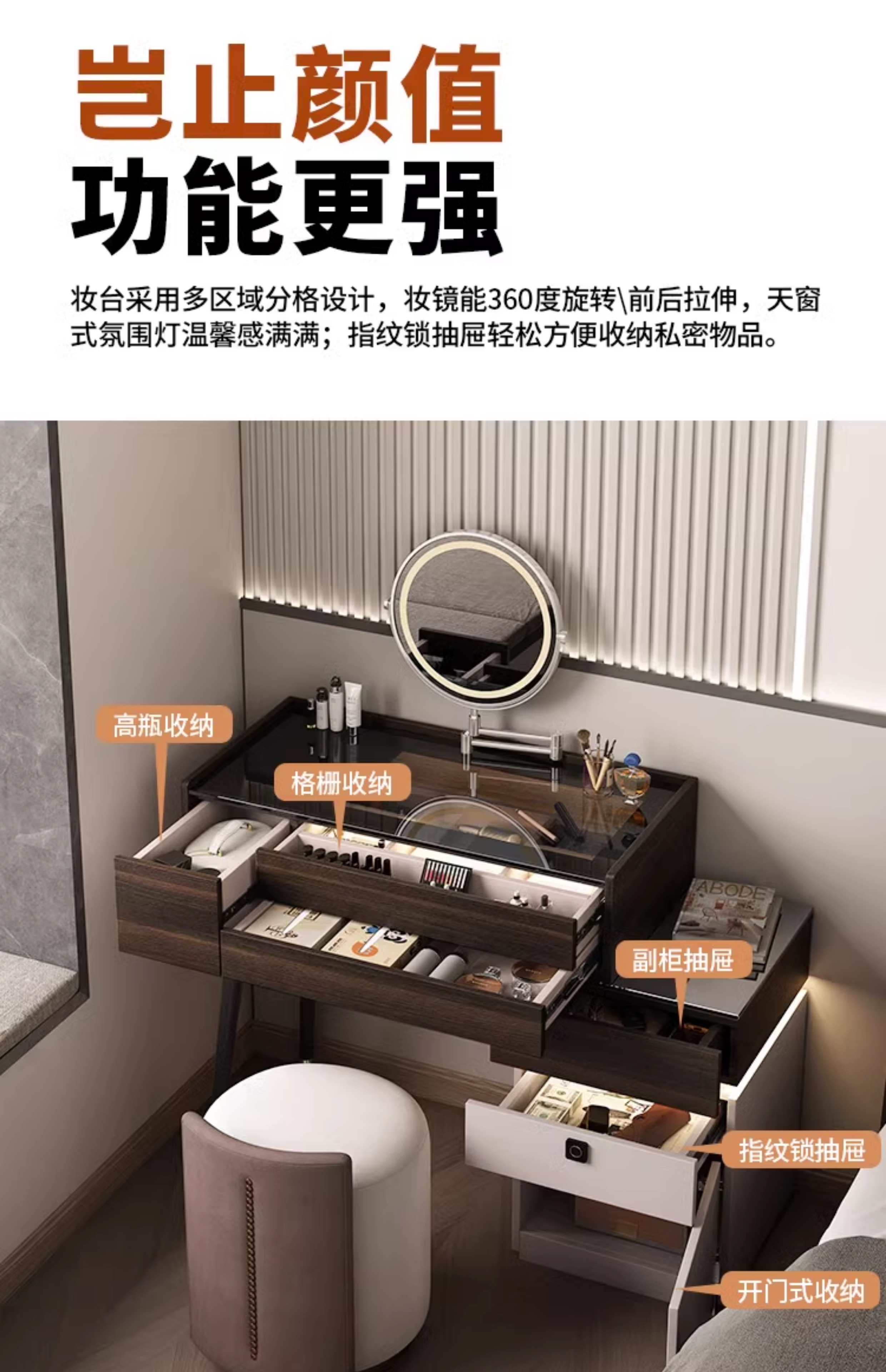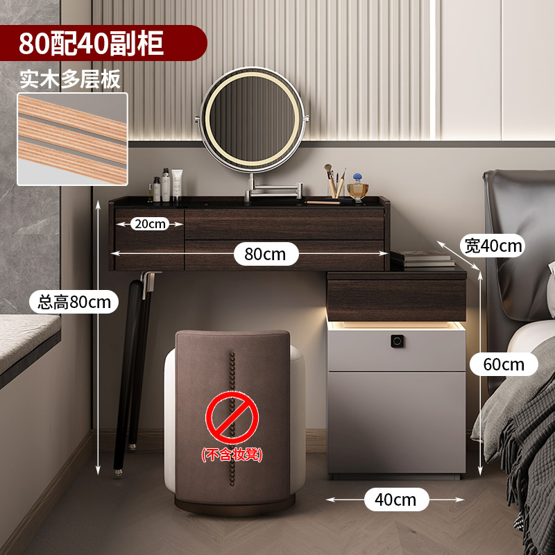 • εαβγδζ80cm, 서랍장 40개/원목+지문잠금장치+접이식거울+스툴 εαβγδζ