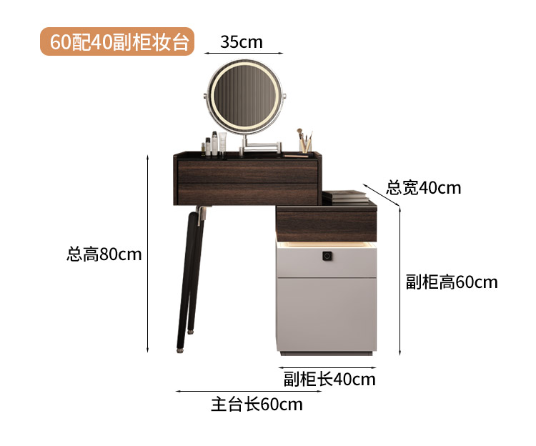 • εαβγδζ60cm, 서랍장 40개/원목+지문잠금장치+접이식거울 εαβγδζ