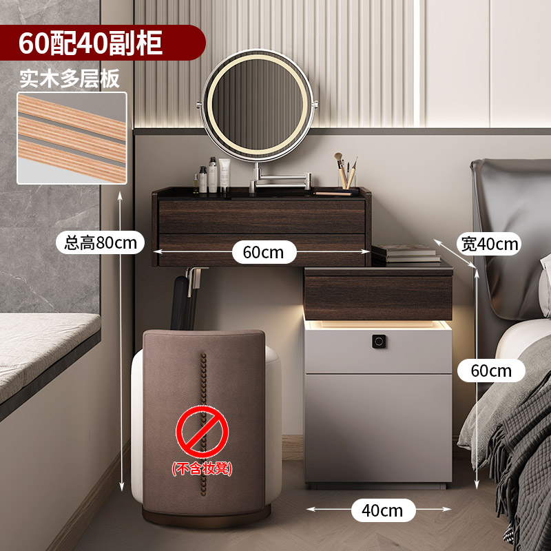 • εαβγδζ60cm, 서랍장 40개/원목+지문잠금장치+접이식거울+스툴 εαβγδζ