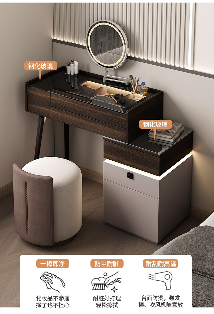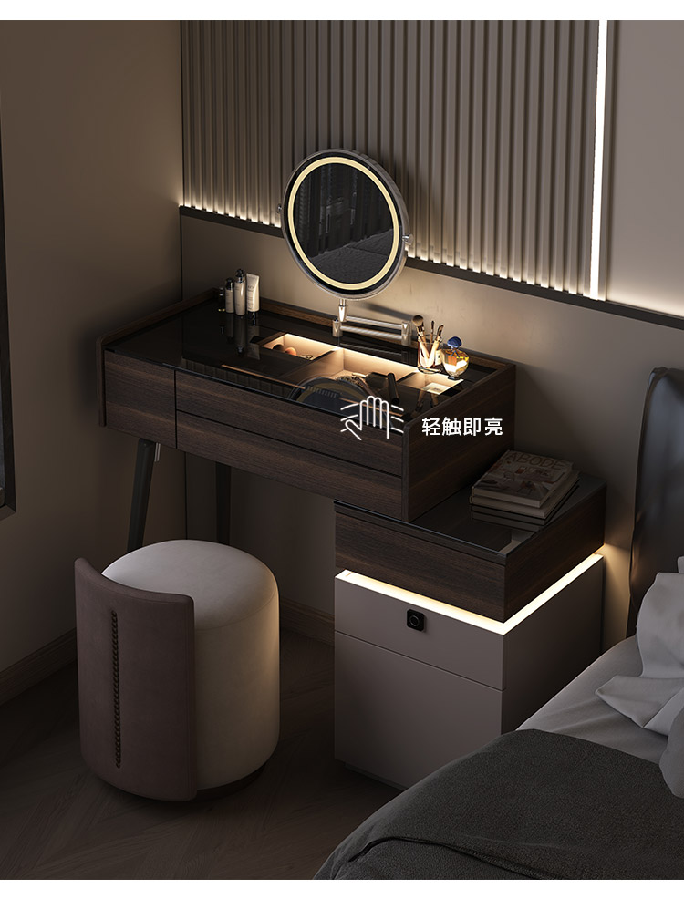이탈리아 미니멀리스트 작은 드레싱 테이블 침대 옆 테이블 통합 단단한 나무 메이크업 테이블 빛 고급 침실 침실 메이크업 테이블스토어 가기