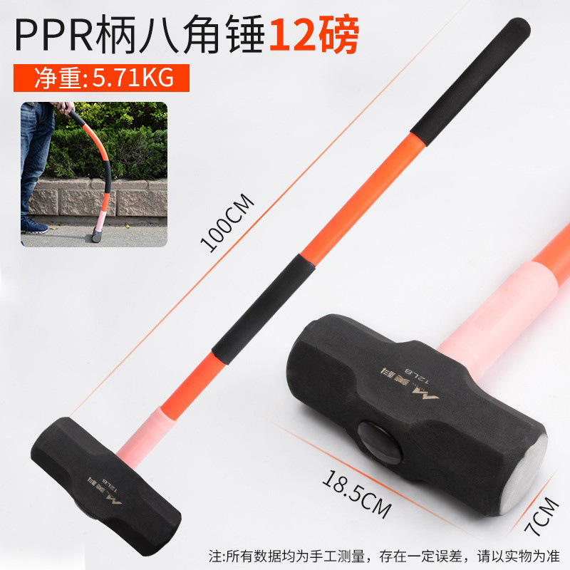 • 12파운드 충격 흡수 핸들 팔각형 망치: 과체중