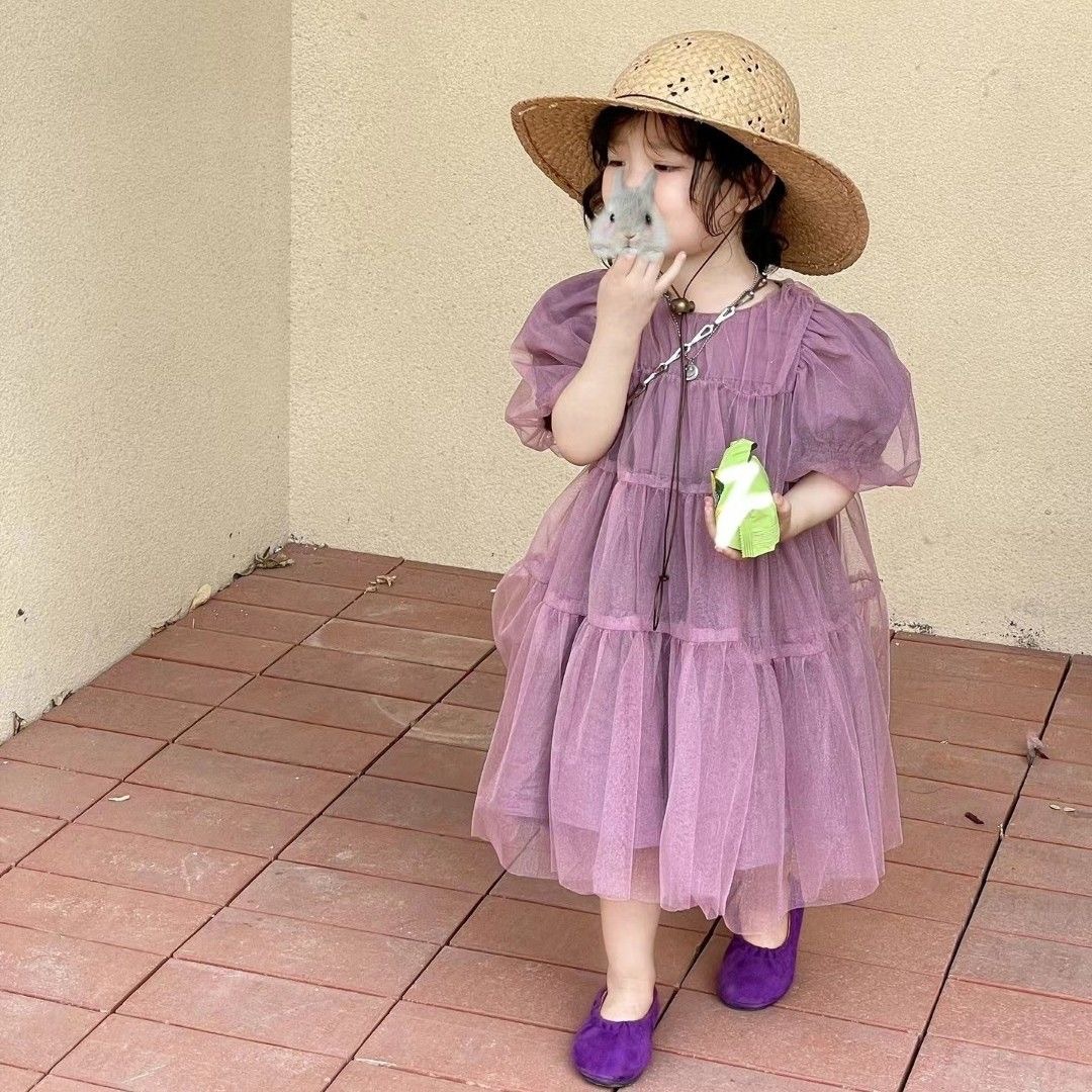 여자 여름 원피스 귀여운 메쉬 공주 원피스 기질 랜턴 소매 생일 원피스 아기 거품 소매 퍼프 스커트스토어 가기