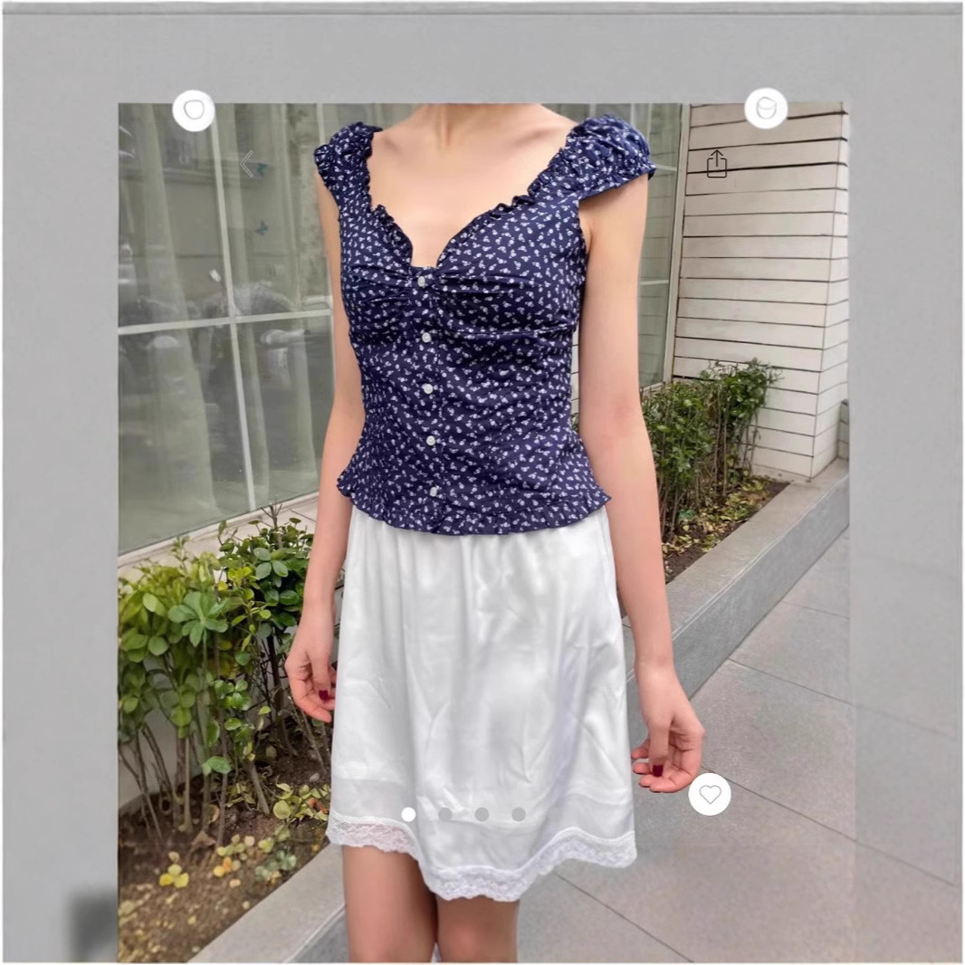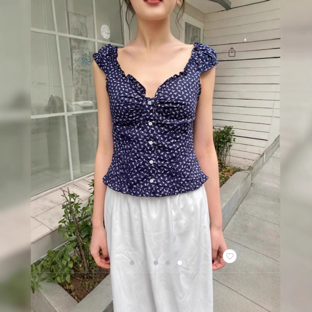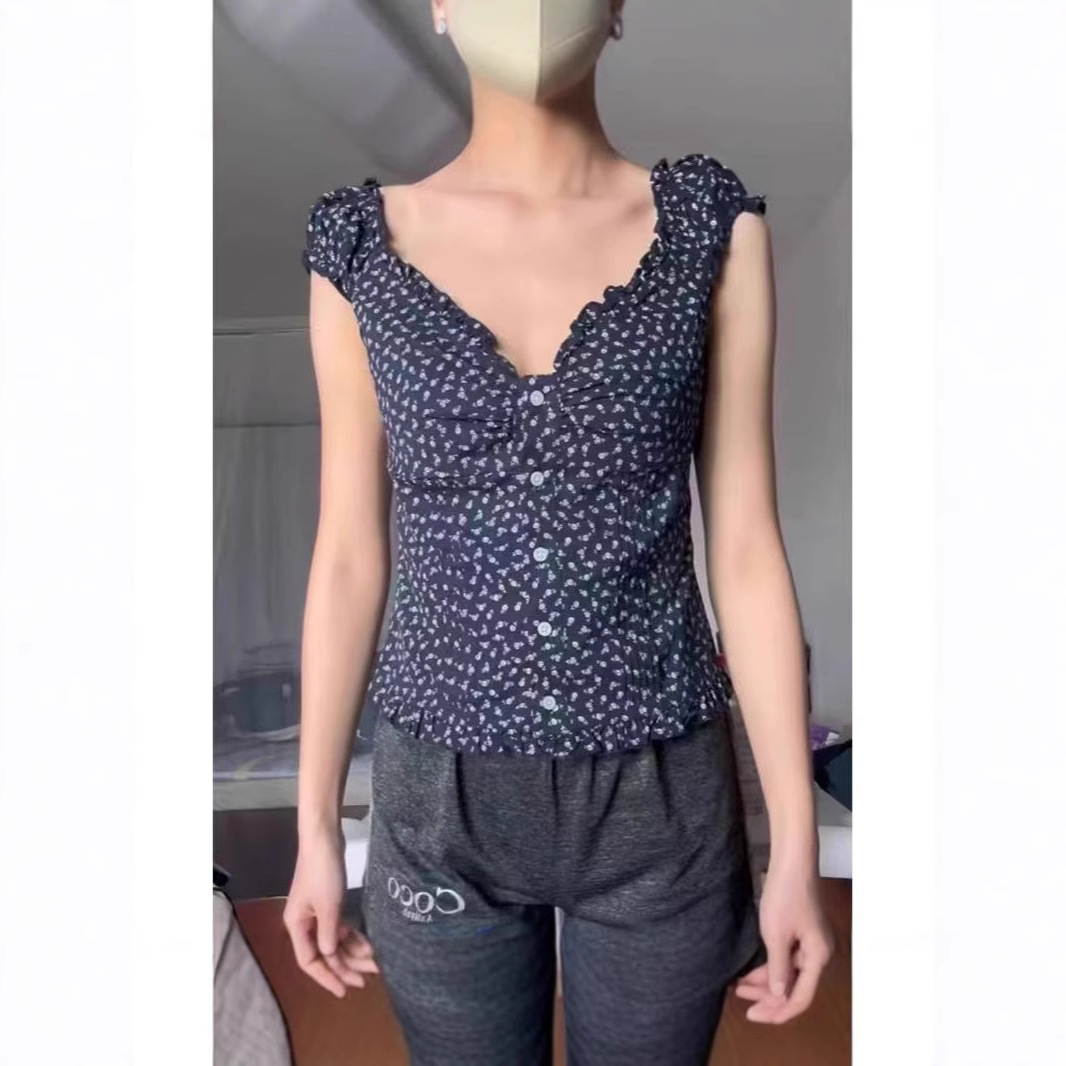 BM 스타일 스위트 핫 걸 V 넥 플로랄 버블 반팔 셔츠 여성용 티셔츠 Bm 디자인 센스 슬림 핏 니치 탑 트렌디