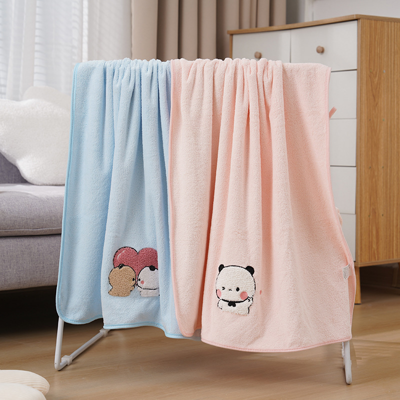 공장 도매 팬더 하나 또는 두 개의 인형 수건 큰 목욕 수건 마른 헤어 캡 커플 세 조각 산호 양털 수건 생성스토어 가기