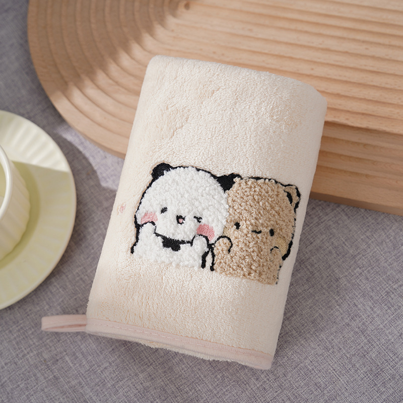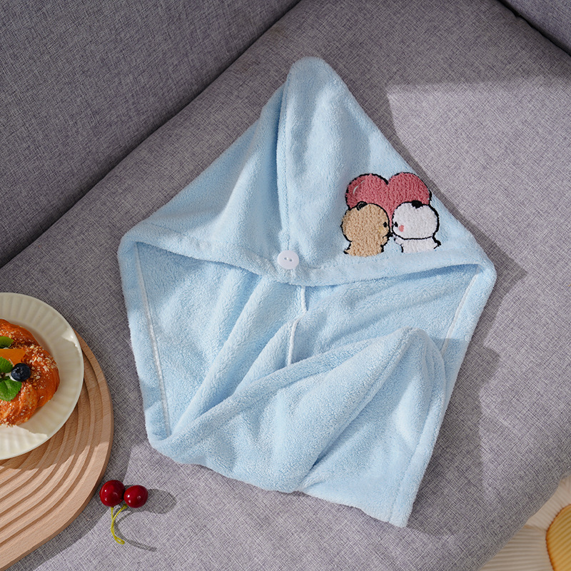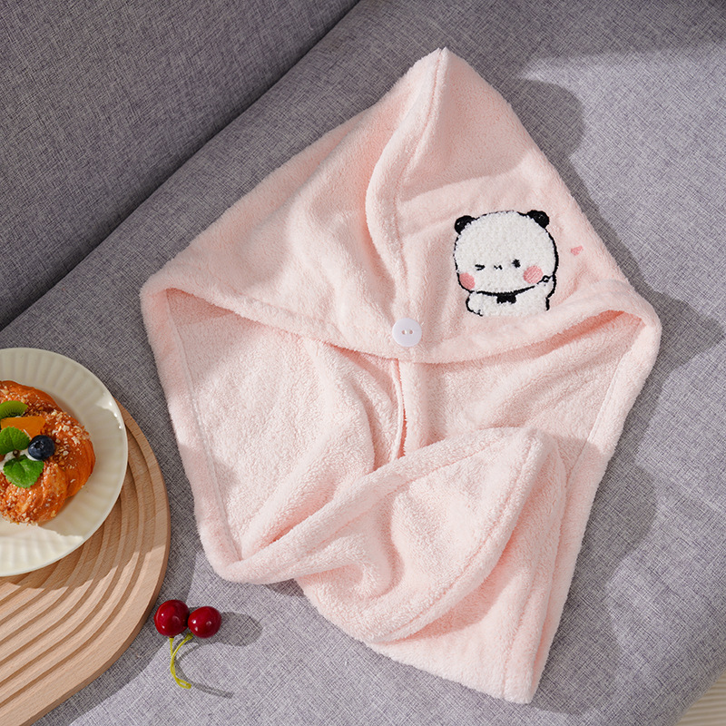 공장 도매 팬더 하나 또는 두 개의 인형 수건 큰 목욕 수건 마른 헤어 캡 커플 세 조각 산호 양털 수건 생성