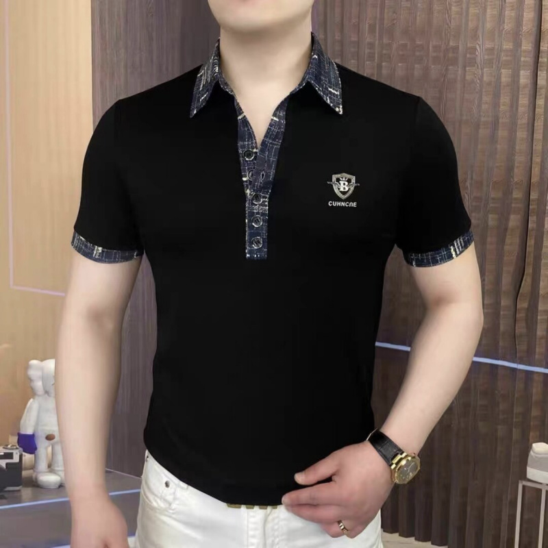 하이 엔드 품질의 유럽 상품 여름 남성 옷깃 품질 폴로 전나무 슬림 핏 반팔 간단한 패션 올 매치 온라인 인기 절반스토어 가기