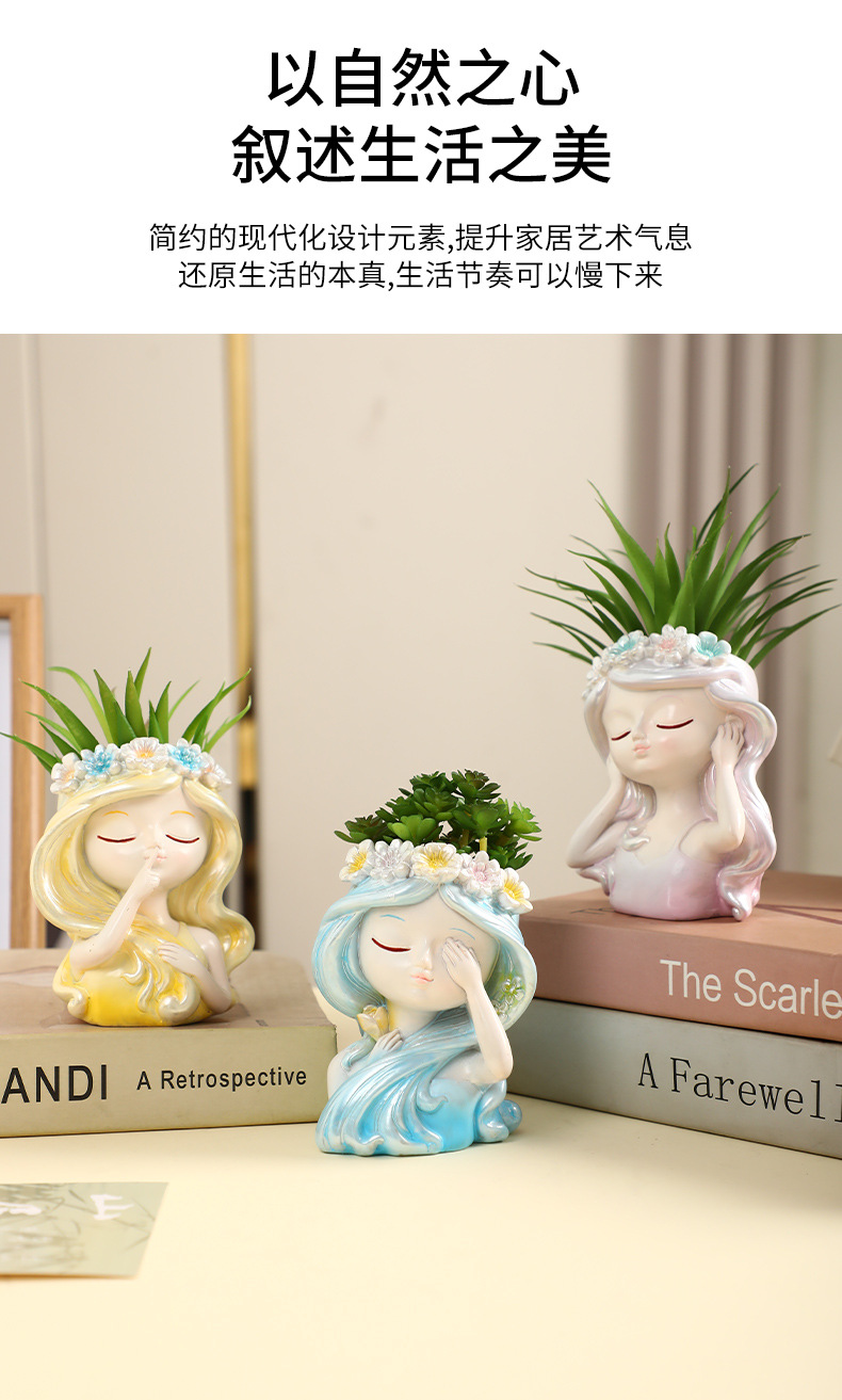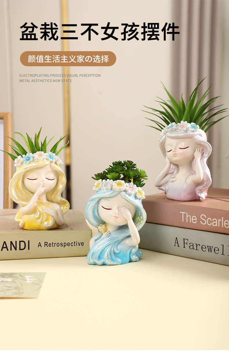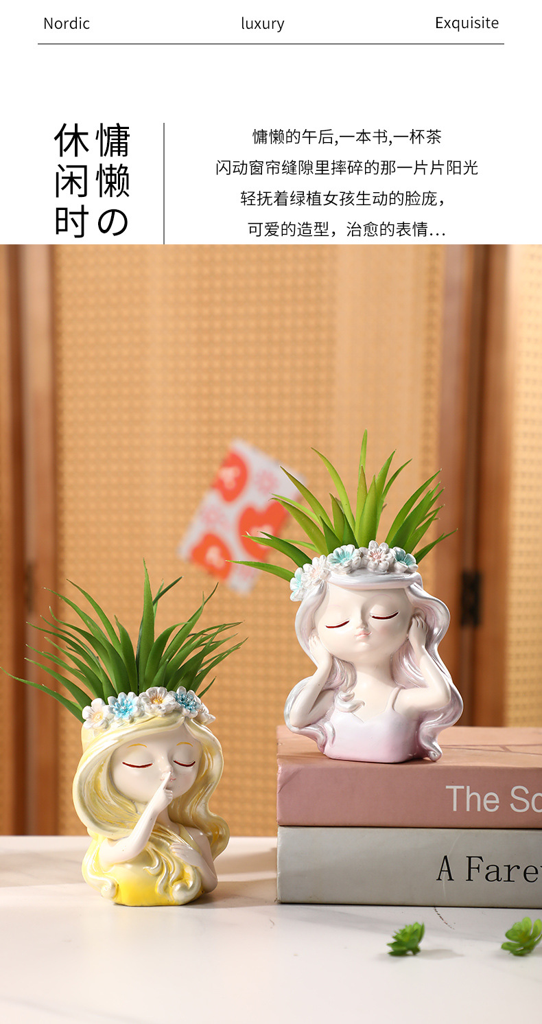 창조적 인 소녀 시뮬레이션 화분 화분 정원 홈 침실 데스크 데스크탑 장식 수지 공예 장식품