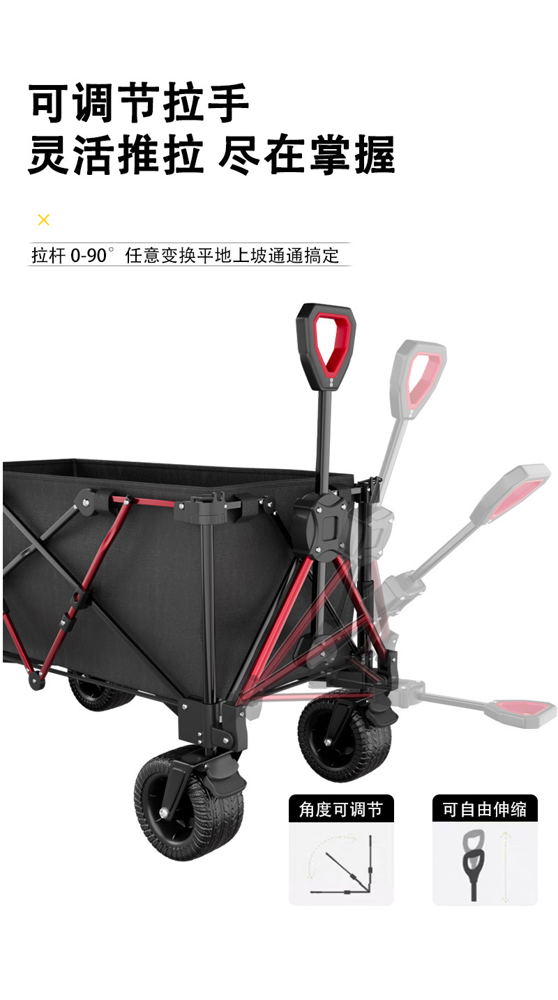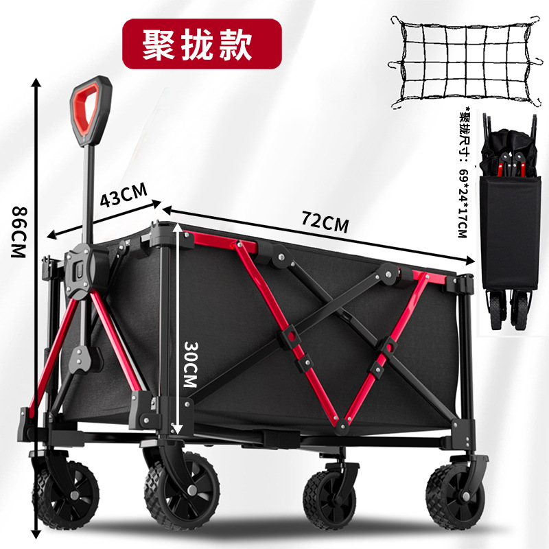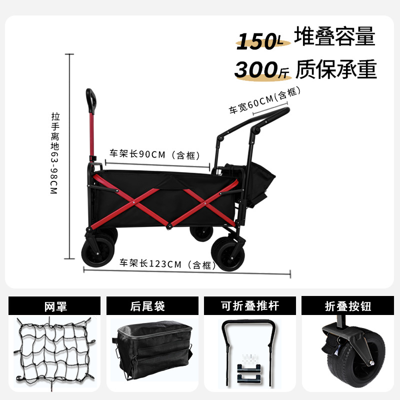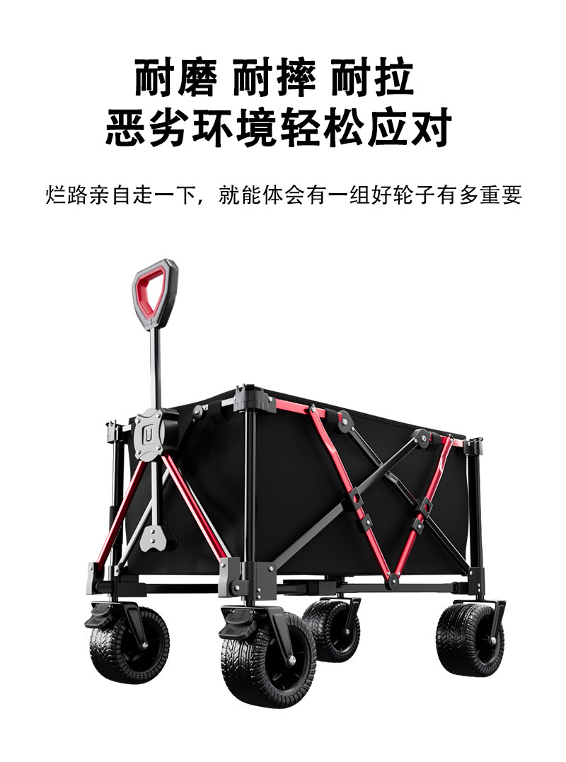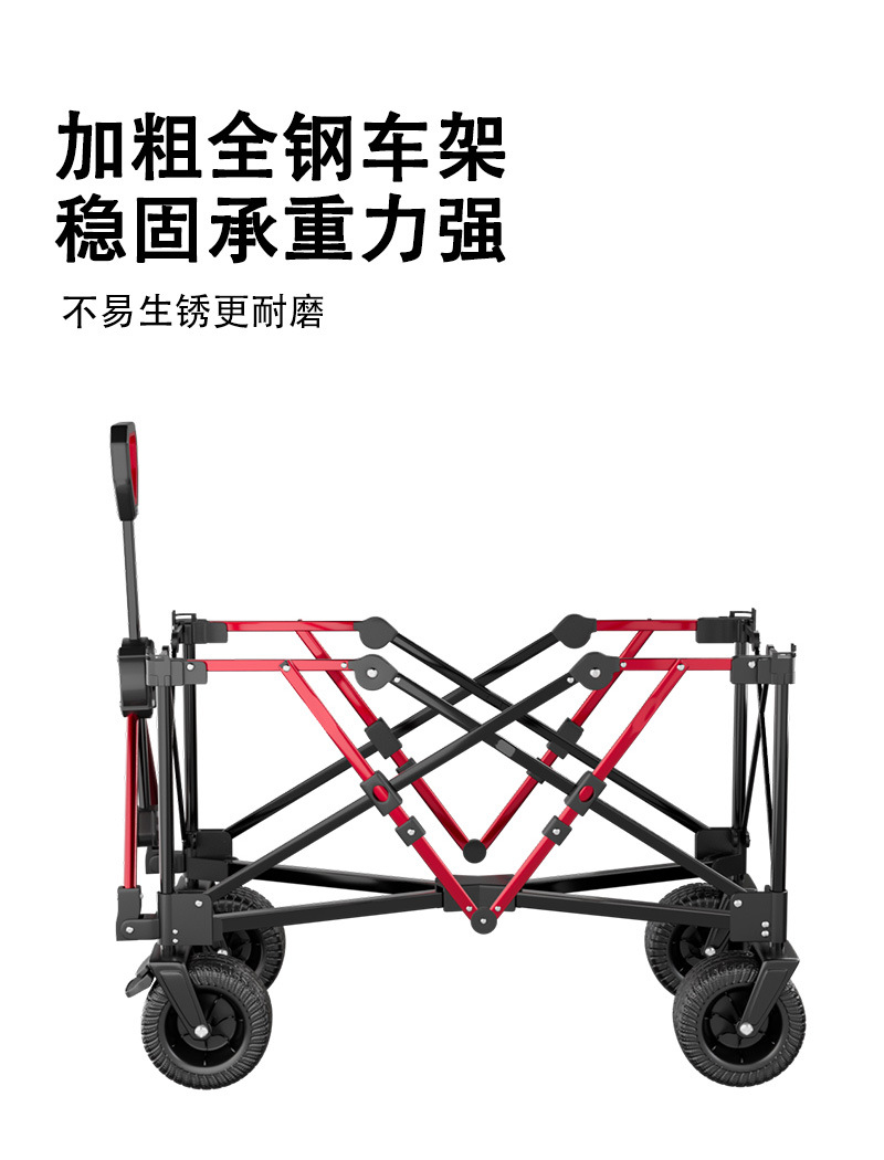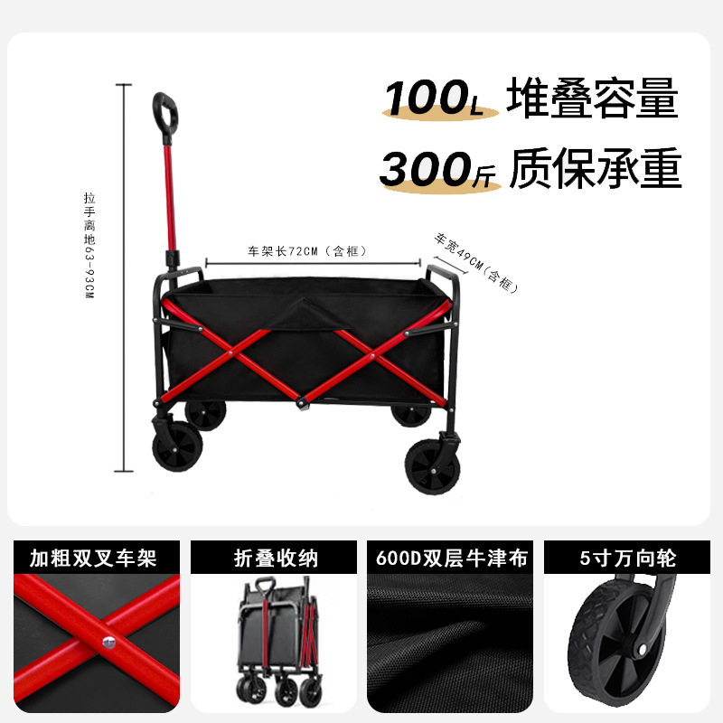 리비 캠핑 자동차 캠핑 트롤리 야외 접이식 캠핑 자동차 휴대용 트레일러 핸드 트롤리 와이드 휠 블랙과 레드