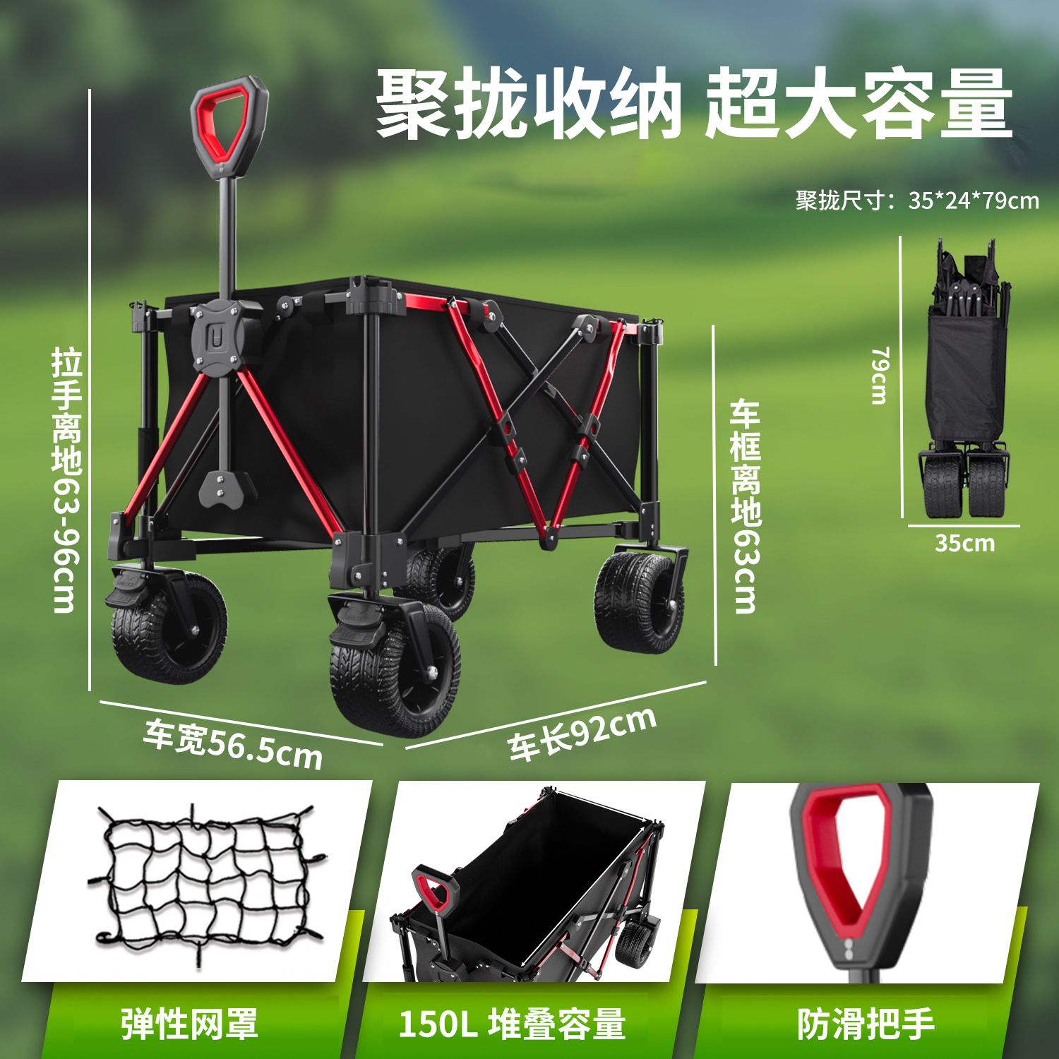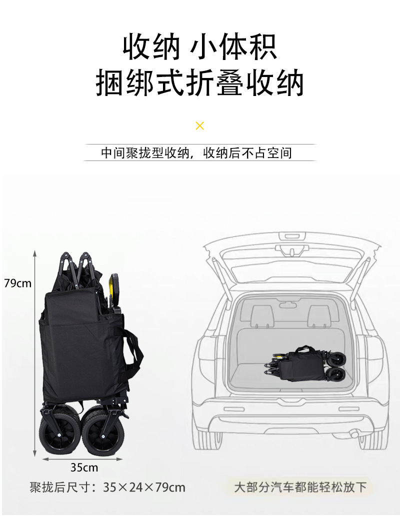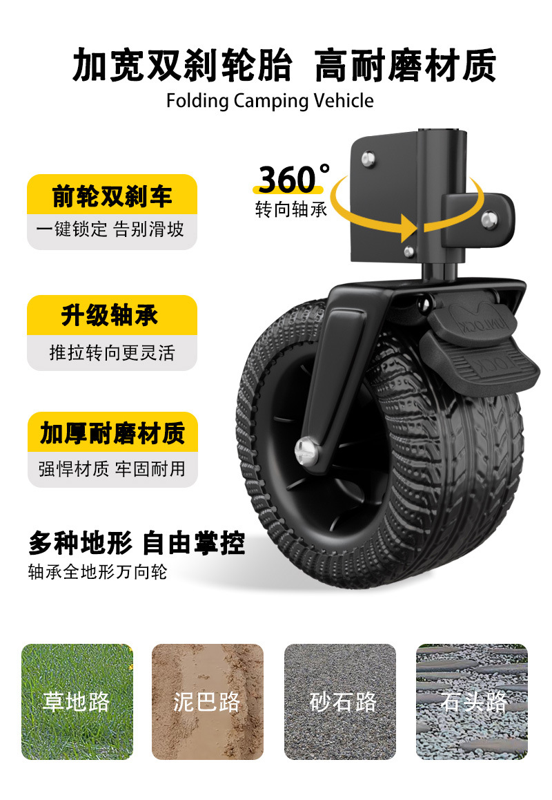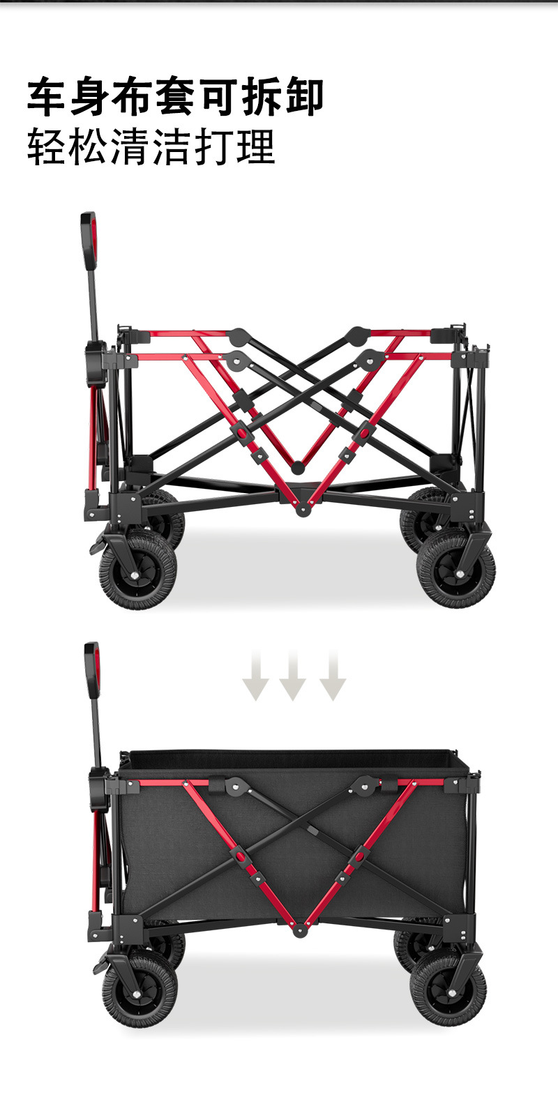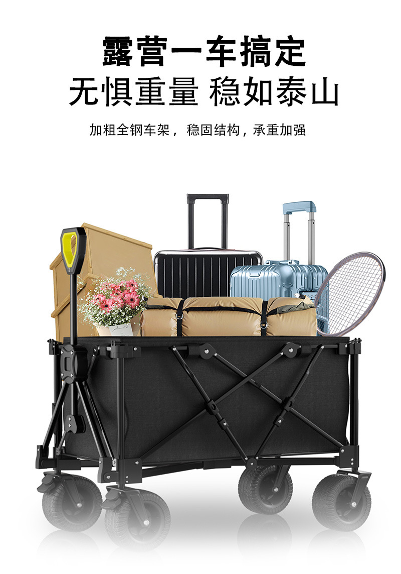 리비 캠핑 자동차 캠핑 트롤리 야외 접이식 캠핑 자동차 휴대용 트레일러 핸드 트롤리 와이드 휠 블랙과 레드