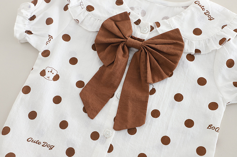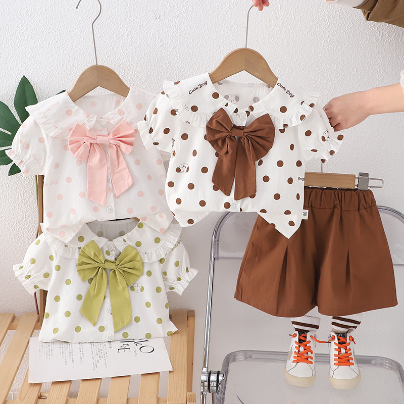 새 소녀의 레이스 옷깃 짧은 소매 세트 어린이 도트 보우 셔츠 면 아기 소녀의 여름 두 액세서리 세트스토어 가기