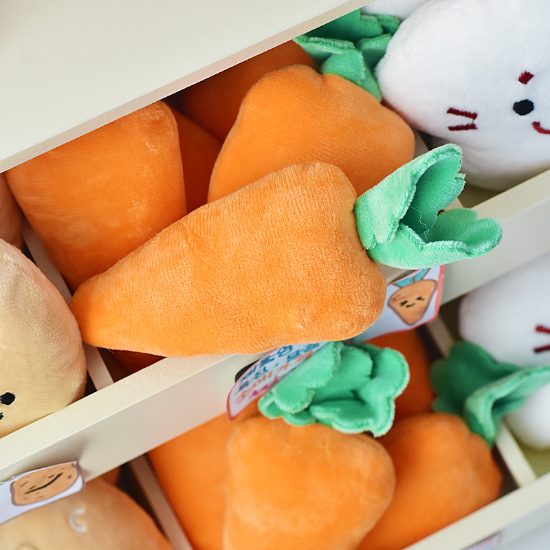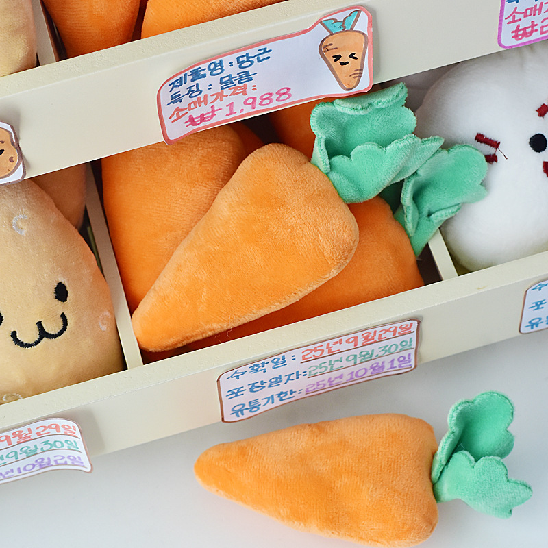 [3개 세트] 귀여운 시뮬레이션 야채 강아지 장난감 애완 동물 플러시 소리 장난감 감자 당근 버섯스토어 가기