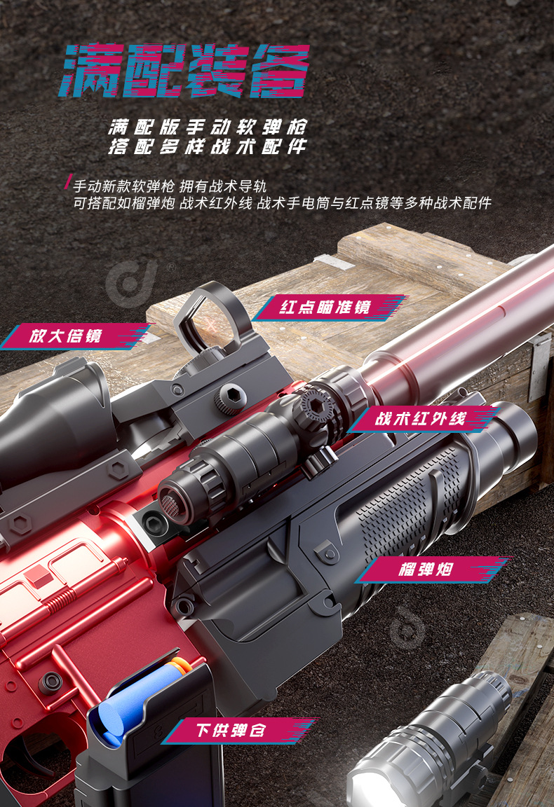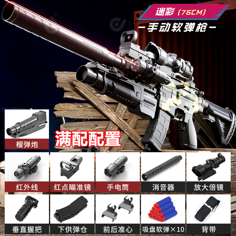 M416 소프트 총알 총 수동 풀러 볼트 스프레이어 라이플 수동 조립 시뮬레이션 장난감 총 어린이 소년스토어 가기