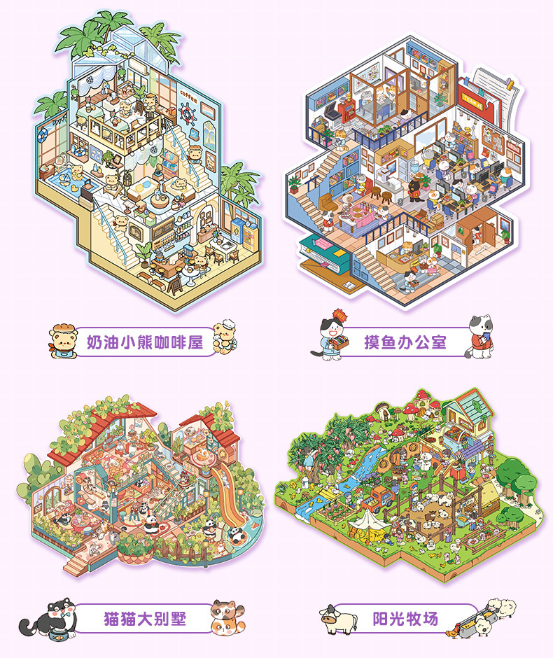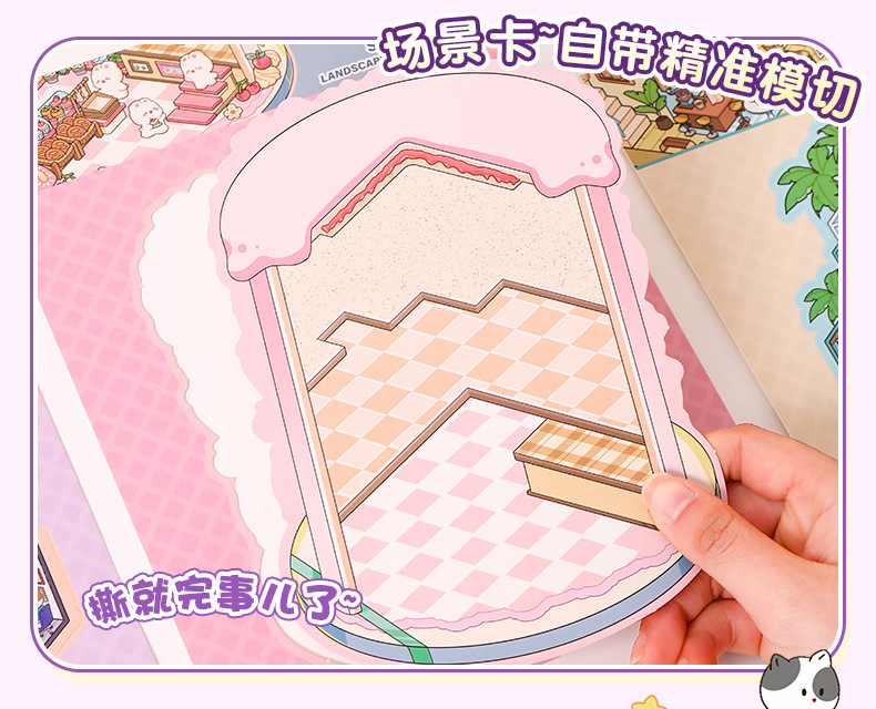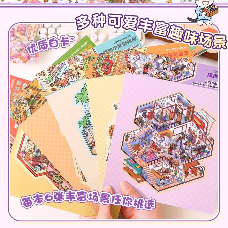 마이크로 스케일 장면 수집이 3d 스티커 어린이 소녀의 풍경 스티커 인터넷 빨간 손 계정 스티커 diy 오두막