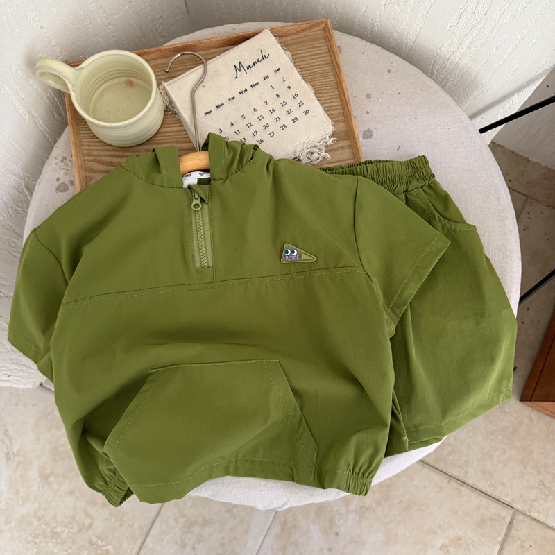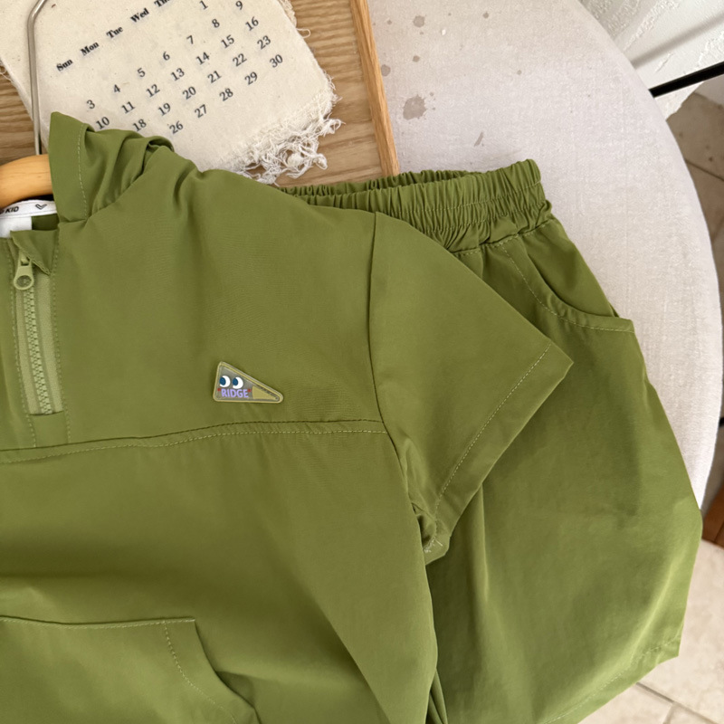 어린이 여름 반팔 세트 2025 새로운 한국식 어린이 아기 편안한 서양식 2 종 모자 세트스토어 가기