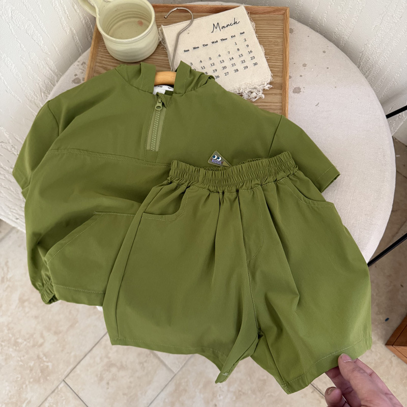 어린이 여름 반팔 세트 2025 새로운 한국식 어린이 아기 편안한 서양식 2 종 모자 세트