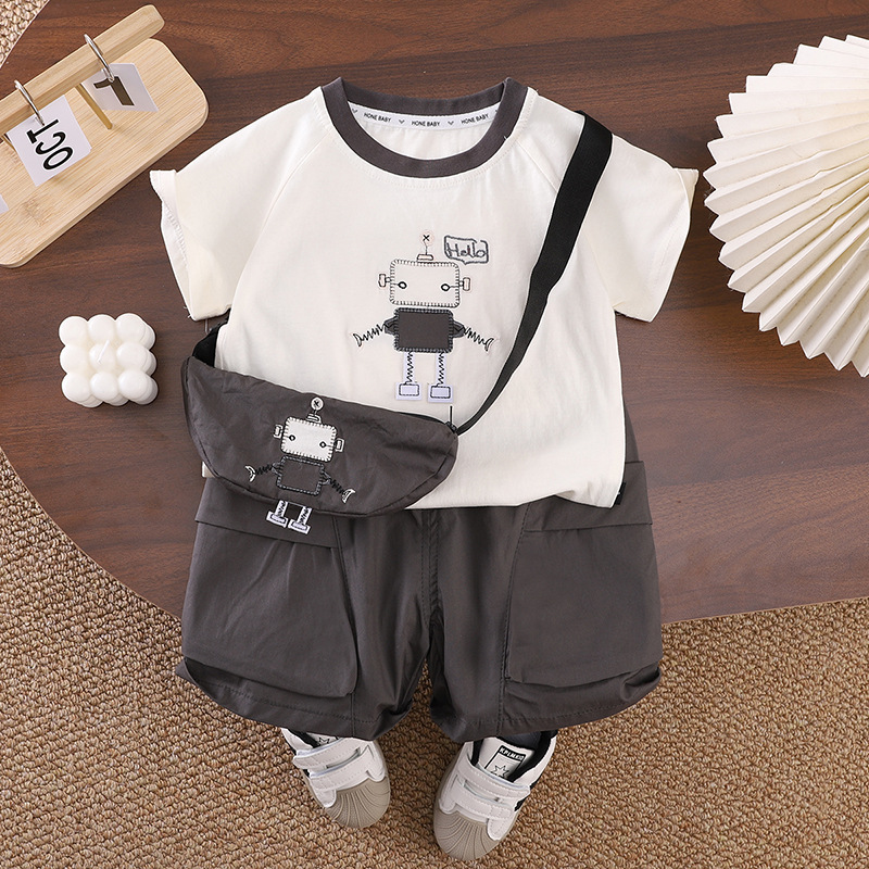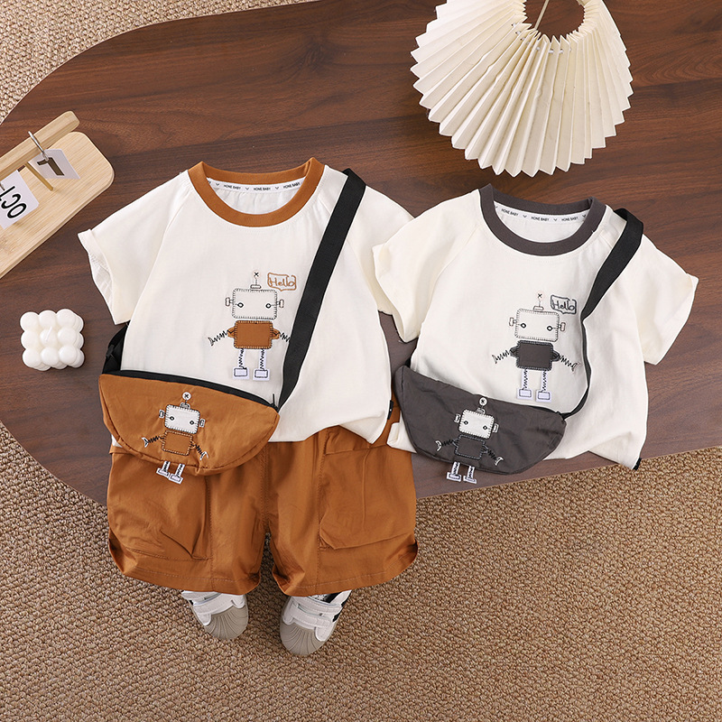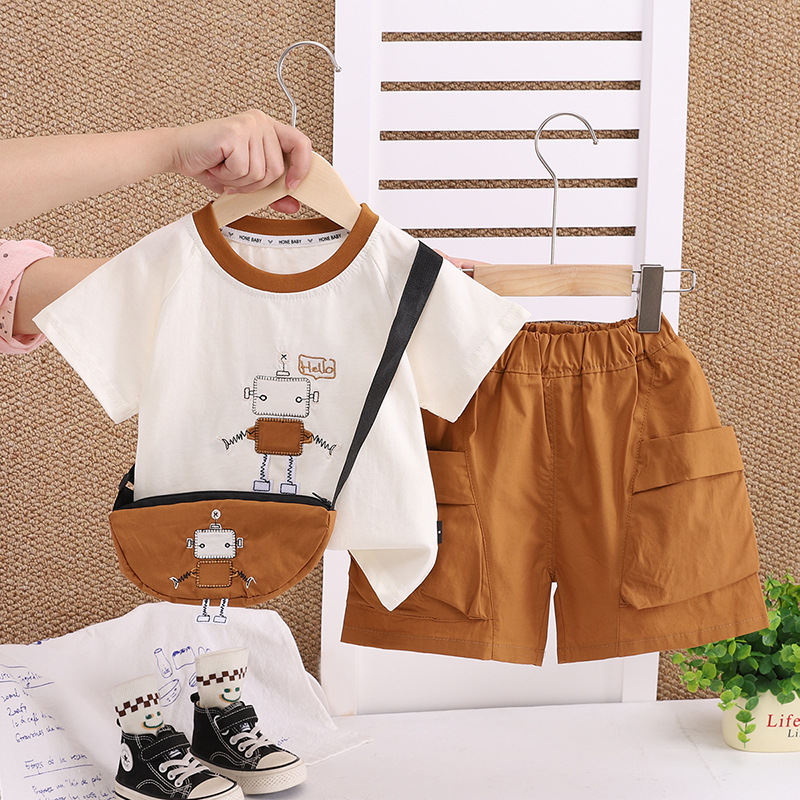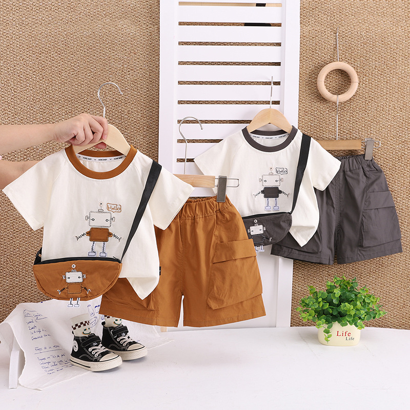 남자들의 여름 옷 만화 반팔 세트 새로운 스타일 서양식 캐주얼 핸들 어린이 여름 투피스 아기 옷 트렌디스토어 가기
