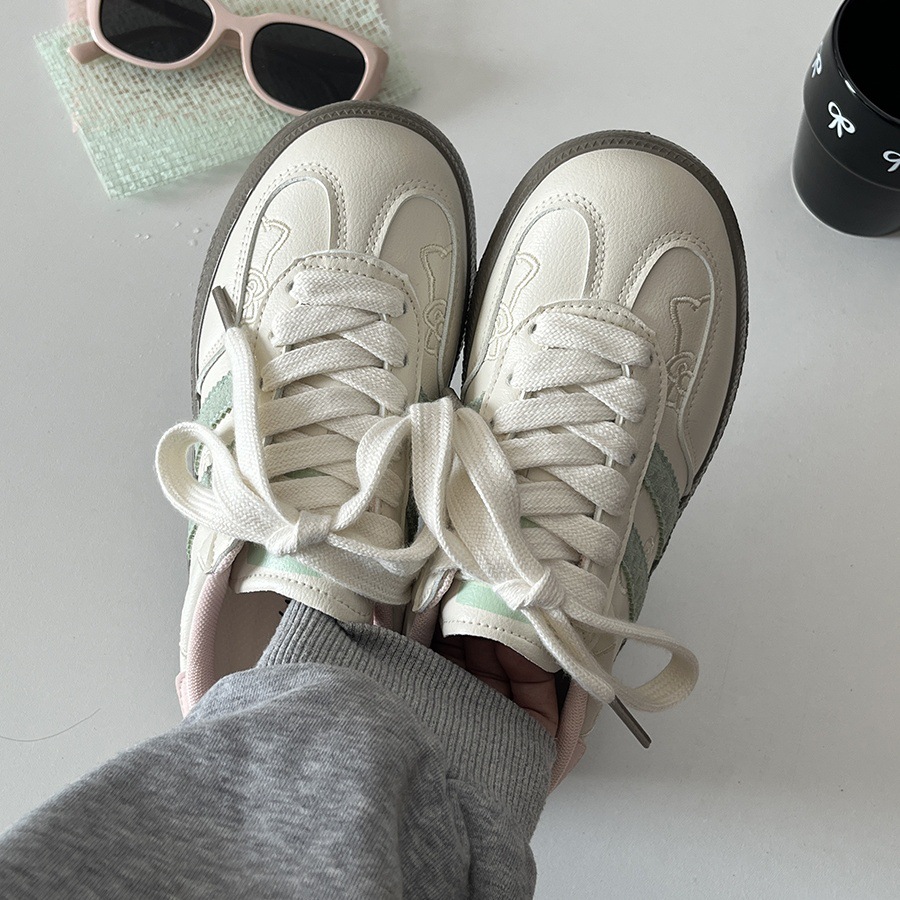 2025 봄 새로운 레트로 올 매치 독일 트레이닝 슈즈 여성 슈퍼 파이어 플랫 포레스트 검프 슈즈 올매치 두꺼운 밑창 스포츠 캐주얼 슈즈